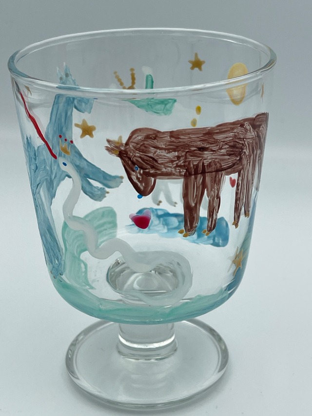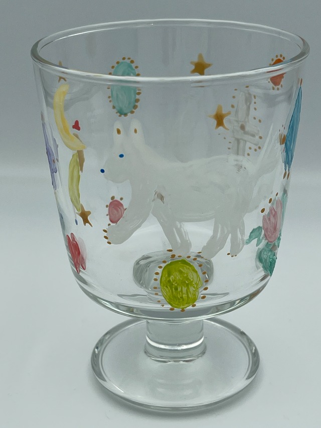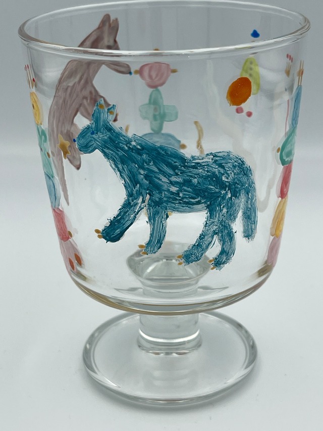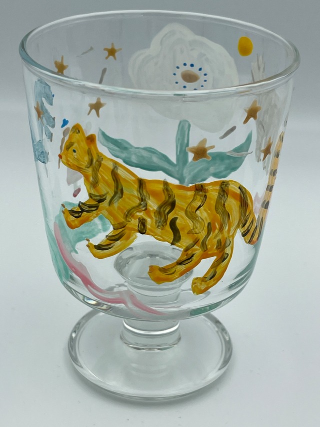 作家/作品について TOKITUGI さんの手書きのゴブレットグラスです。一点、一点、同じものはありません。 様々な飲み物を入れると、グラスの世界観が変わります。アイスクリームやデザート、野菜スティック等食材をいれても〇持ちやすいグラスで安定感があり。贈り物にも喜ばれています。 ____________ 素材 ガラス APマーク取得の専用塗料で、人体無害の安全なものを使用しております。一点一点の絵付け後、オーブンにて焼き付けてありますので完全に定着しております。 ____________ サイズ (おおよそcm) 高11.8 (カップ部分高8) 口径Ф8.5 ___________ 以下、必ずご一読下さい。 •商品在庫について 実店舗での展示販売分含めての数です。実店舗での会計タイミングにより、完売となった場合はご返金対応をさせて頂きます。 •素材についてガラス製品は、割れ物ですので、衝撃や落下などにご注意下さい。 ●お手入れ方法 ガラスくもりや埃が目立つようになりましたら、柔らかい布で軽く拭いて下さい。長らく収納する場合は、埃や水分などふき取ってから収納下さい。自動食洗機、電子レンジ、オーブン、熱湯のご使用はお避け下さい。 •梱包方法 最終的な梱包状況サイズや配送会社の集荷混雑状況により、設定された配送方法と変わる場合がございます。その場合でも、お支払い金額などは変更はございません。 •商品画像について 撮影環境、撮影機材により、商品の色味や素材感など、実物と異なって見える場合がございます。何卒、ご了承下さい。 •返品・交換について 商品詳細を全てご確認頂いた上でのご購入をお願い致します。お客様のご都合による返品,交換は、何卒ご遠慮くださいますようお願い申し上げます。 •店休日: 月、火、水 期間中に頂いたご注文・お問い合わせは、店休日(臨時休業日含む)明けの営業時間内に順に対応させて頂きます。