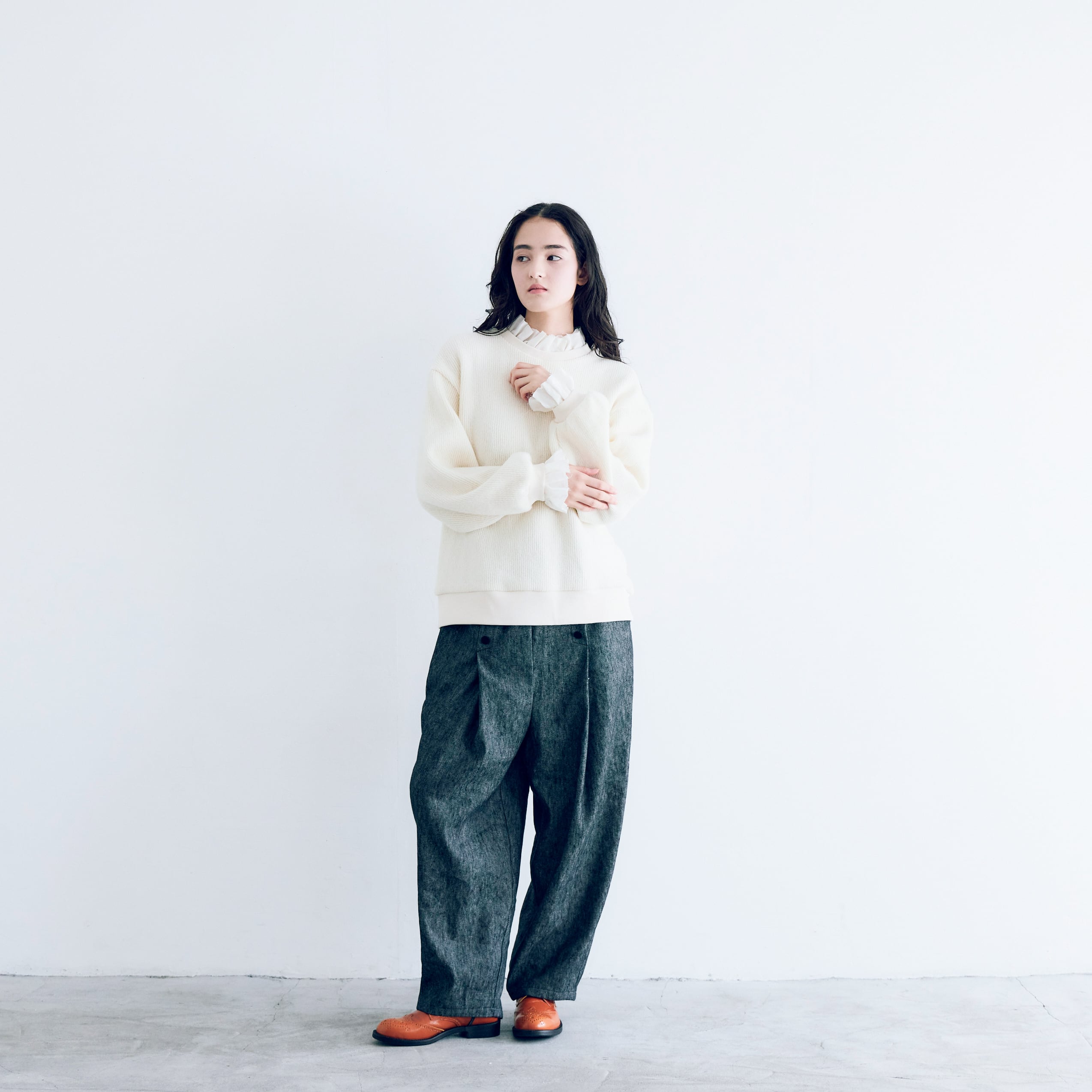ふんわり、すっきりとした身頃。お袖はゆったりととしたシルエットで、袖口に膨らみを持たせたパフスリーブ。