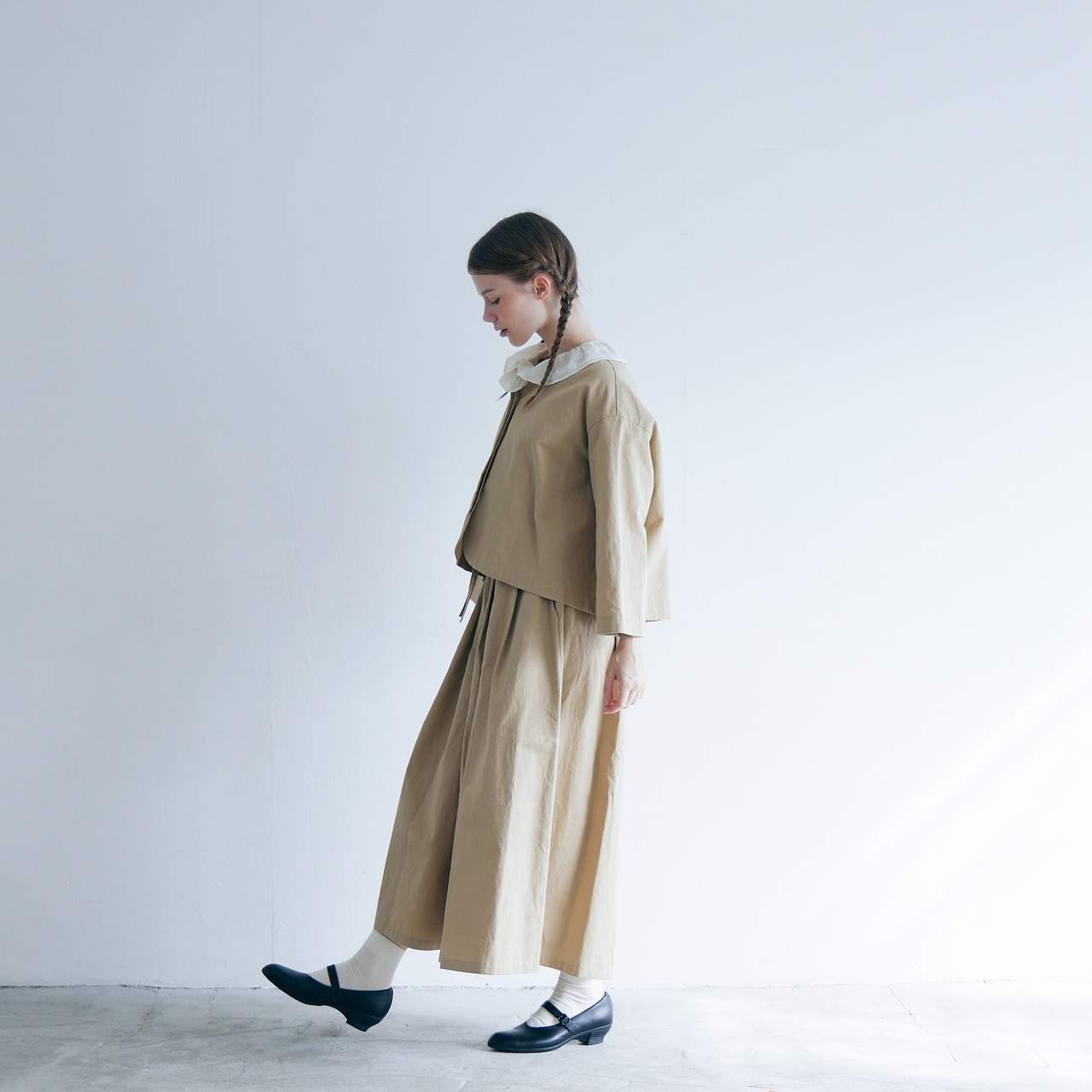 ロング丈のボトムや ワンピースなどと合わせやすい丈感。