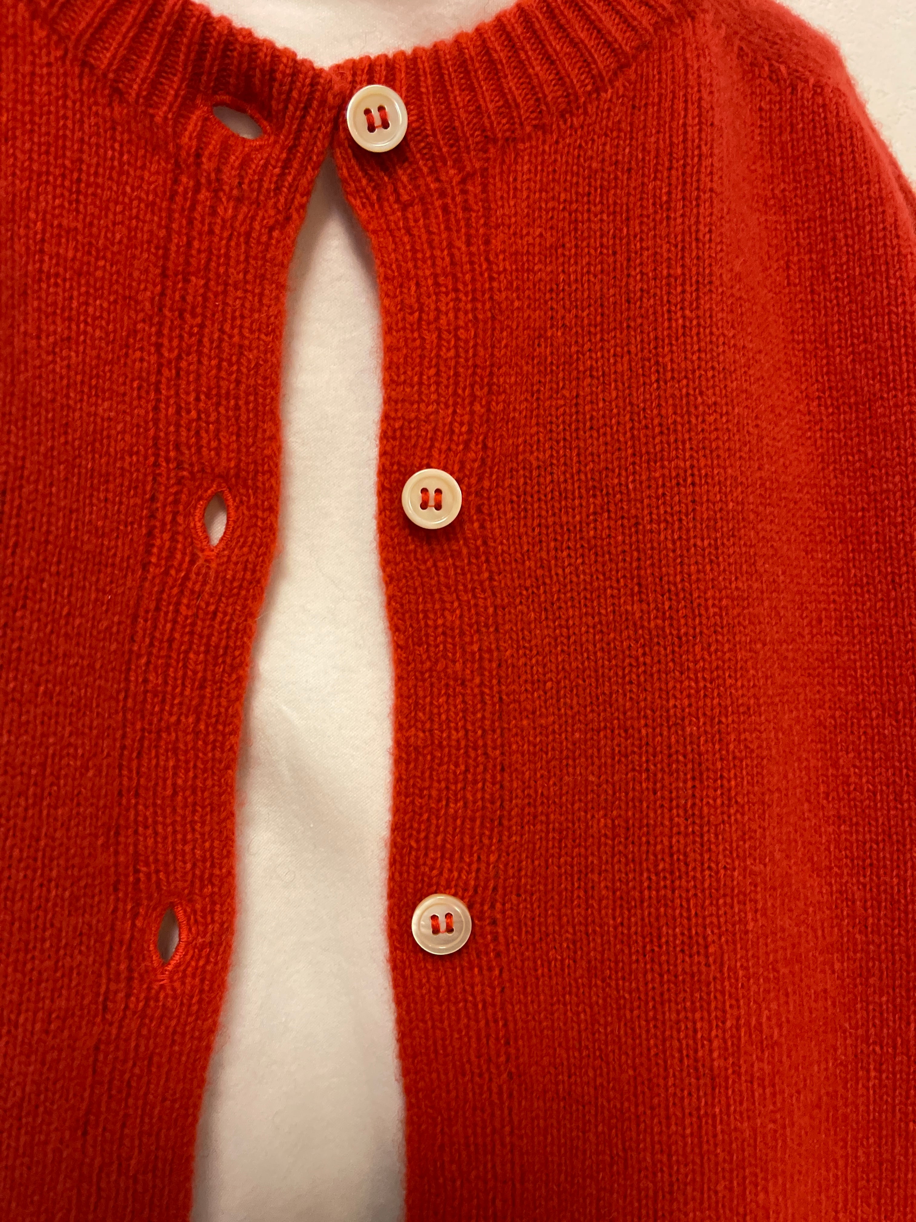 上質なウールとカシミヤをブレンドした素材で編み上げた軽くてあたたかなカーディガンです。