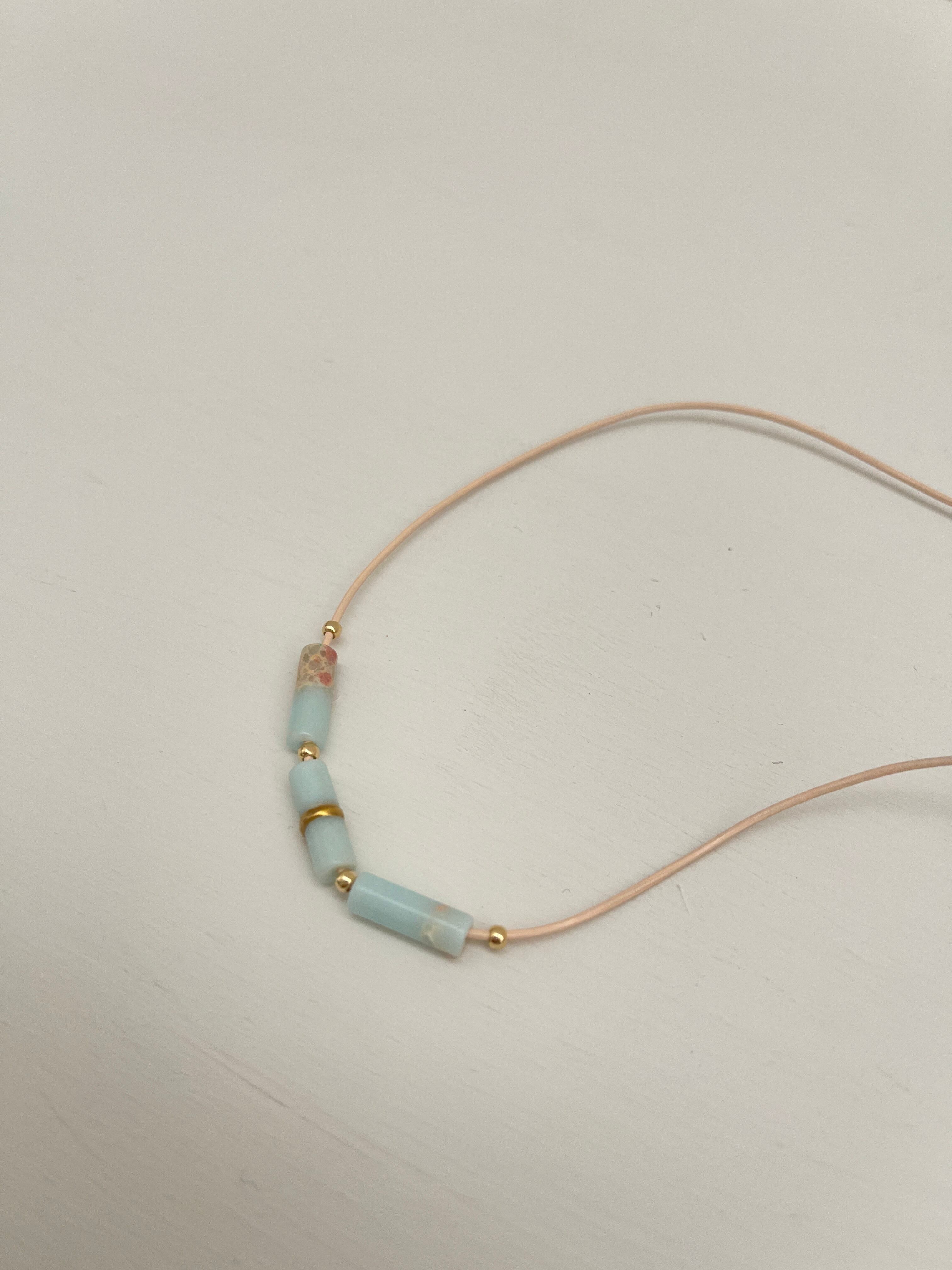 URU/鉱物蒔絵ネックレス/インプレッションB紐ピンクベージュ