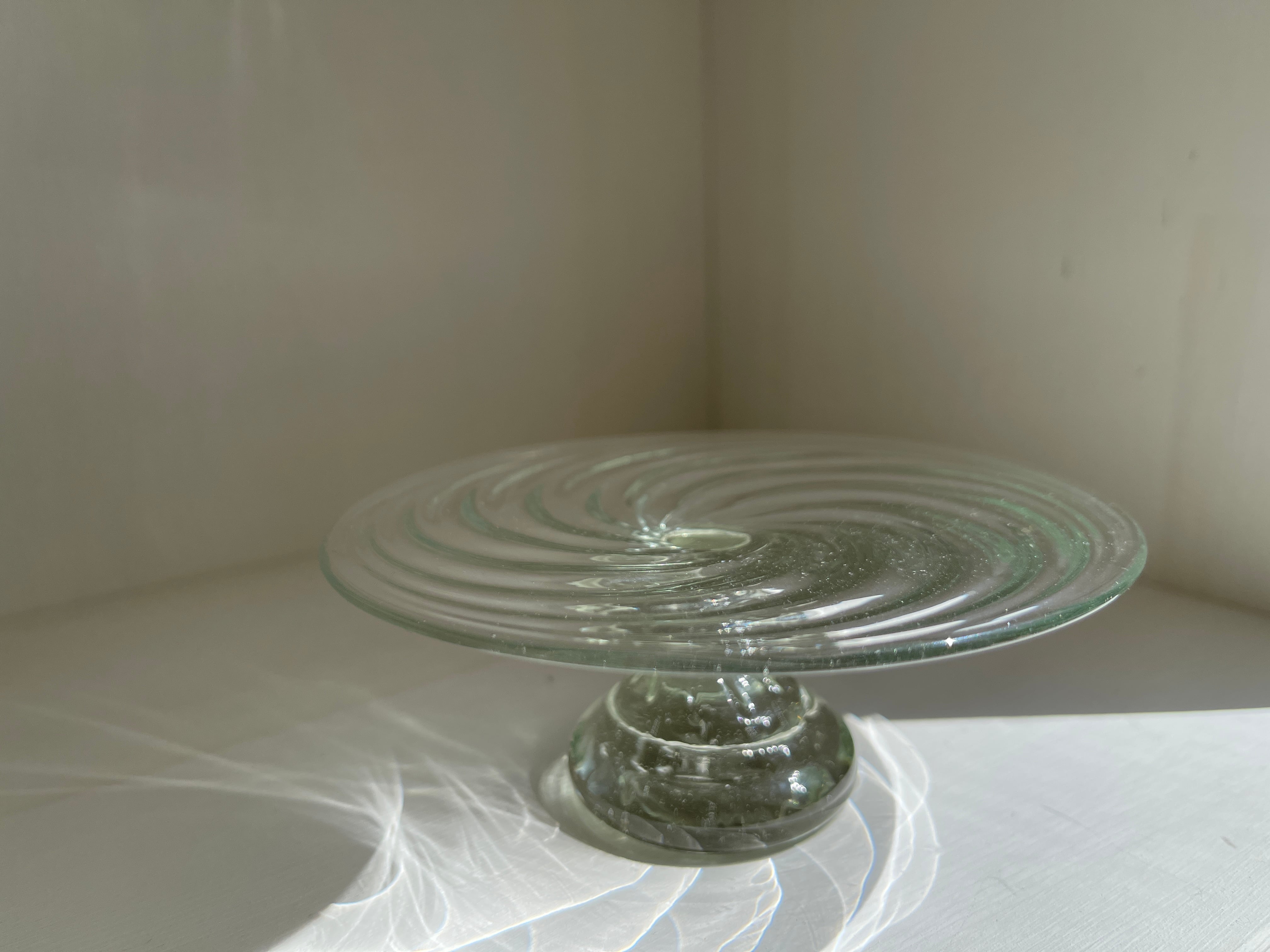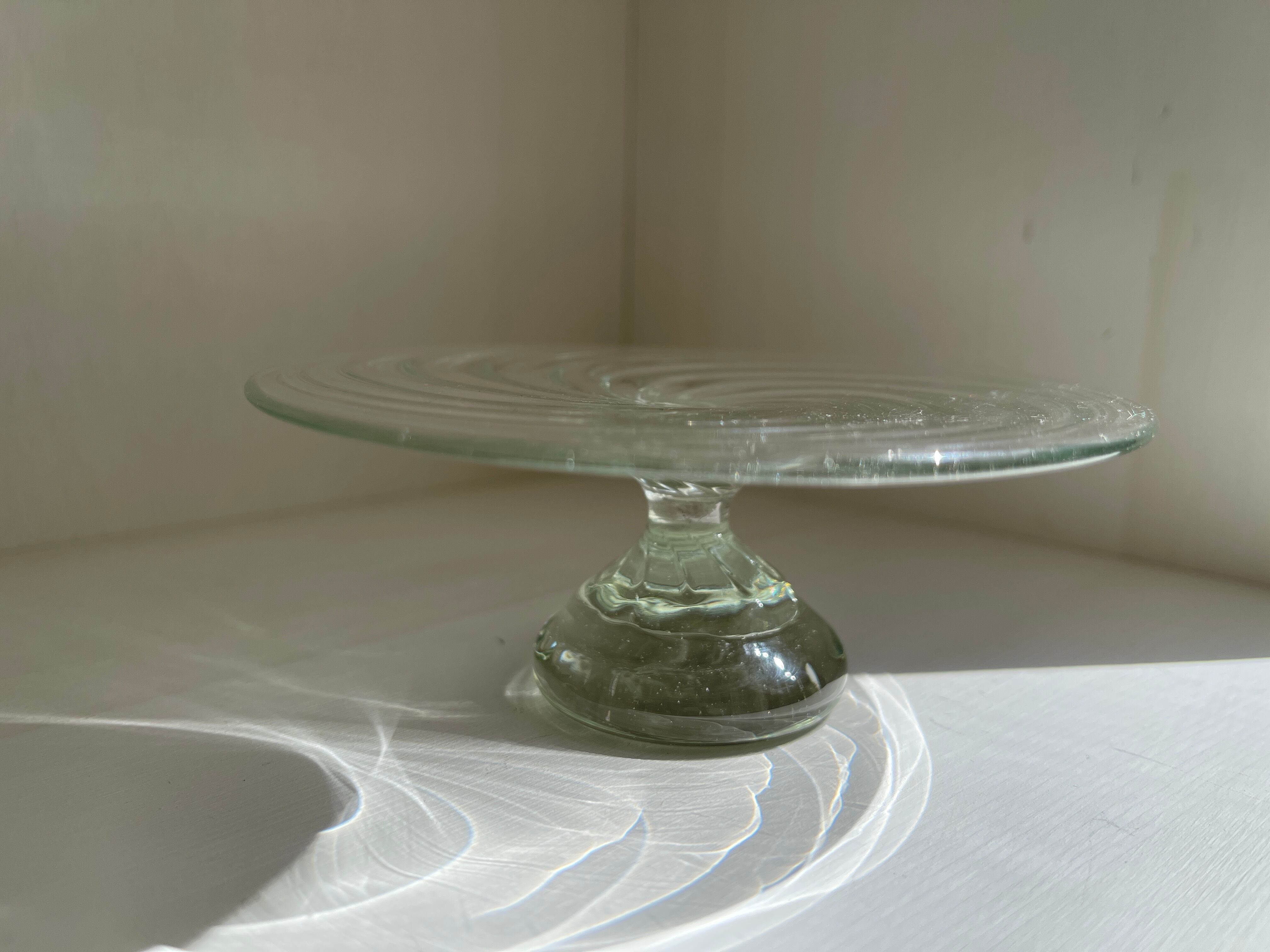 脚付台のコンポート中サイズです。リングやネックレスを置いたり、ドライフラワーなど飾っても。小さなスイーツや、おつまみなど置いて、夏らしい食卓に。チョコレートなども映えそうです。ILOeでは、プレゼントにとても人気の作品です。
