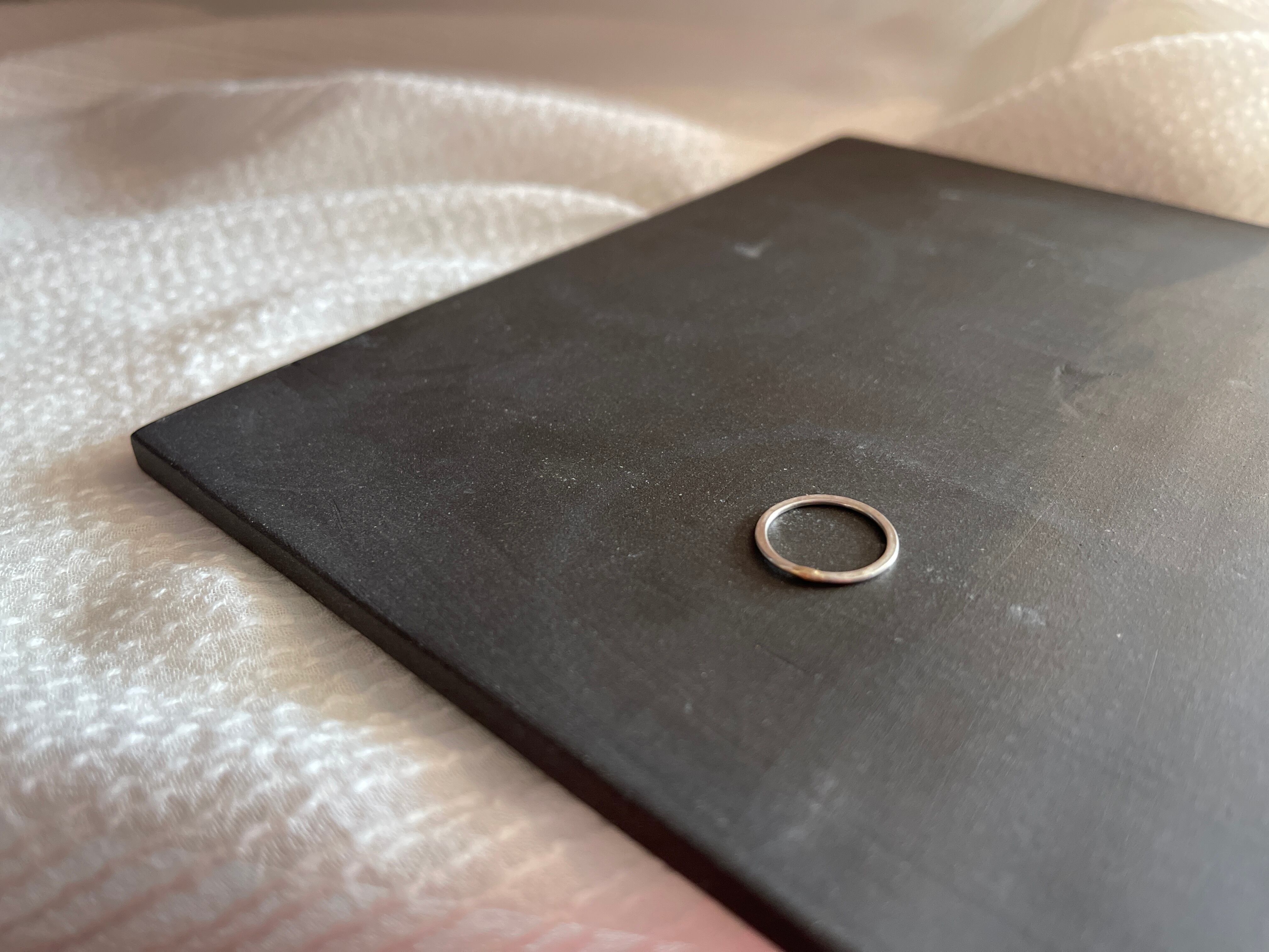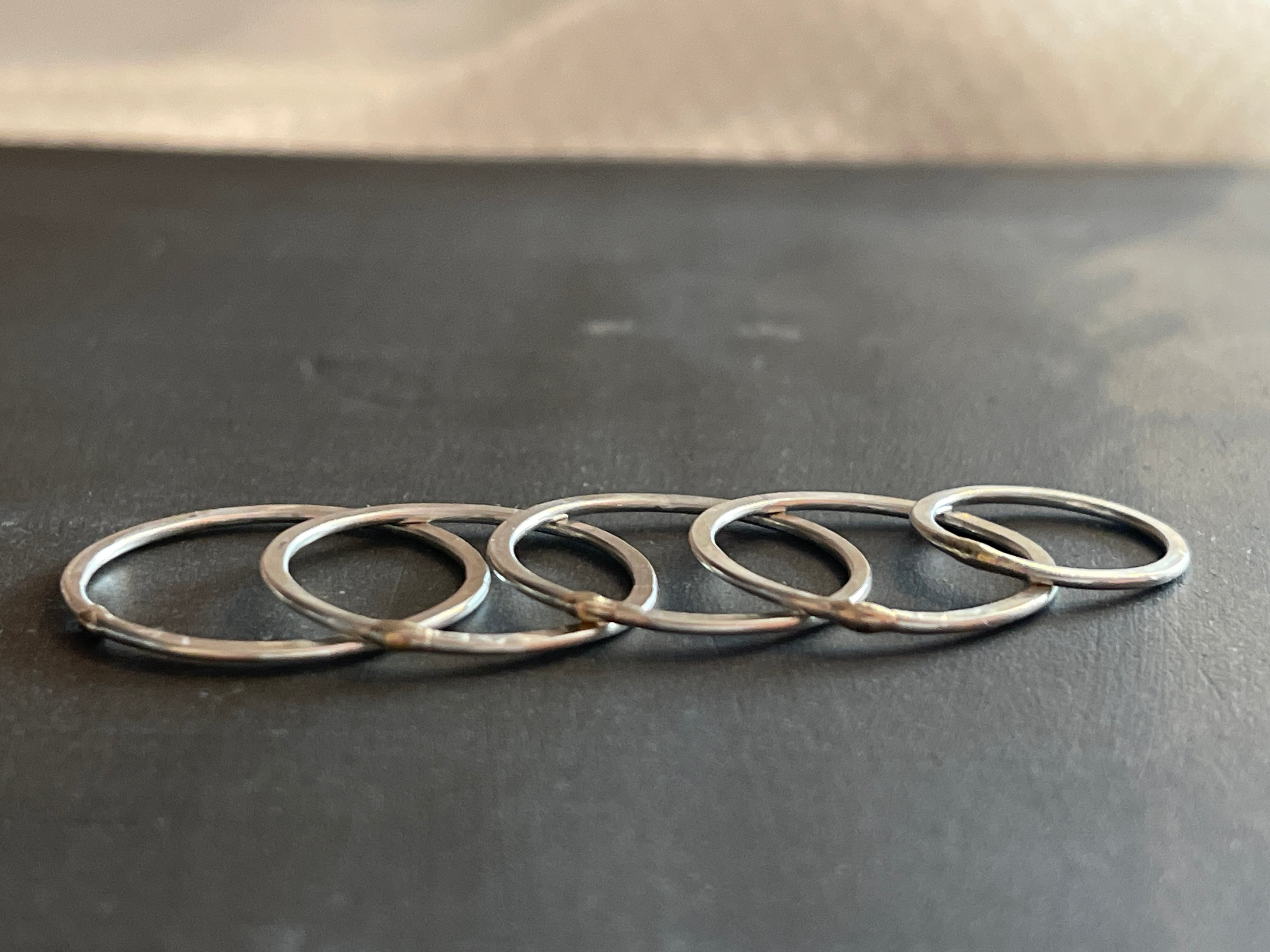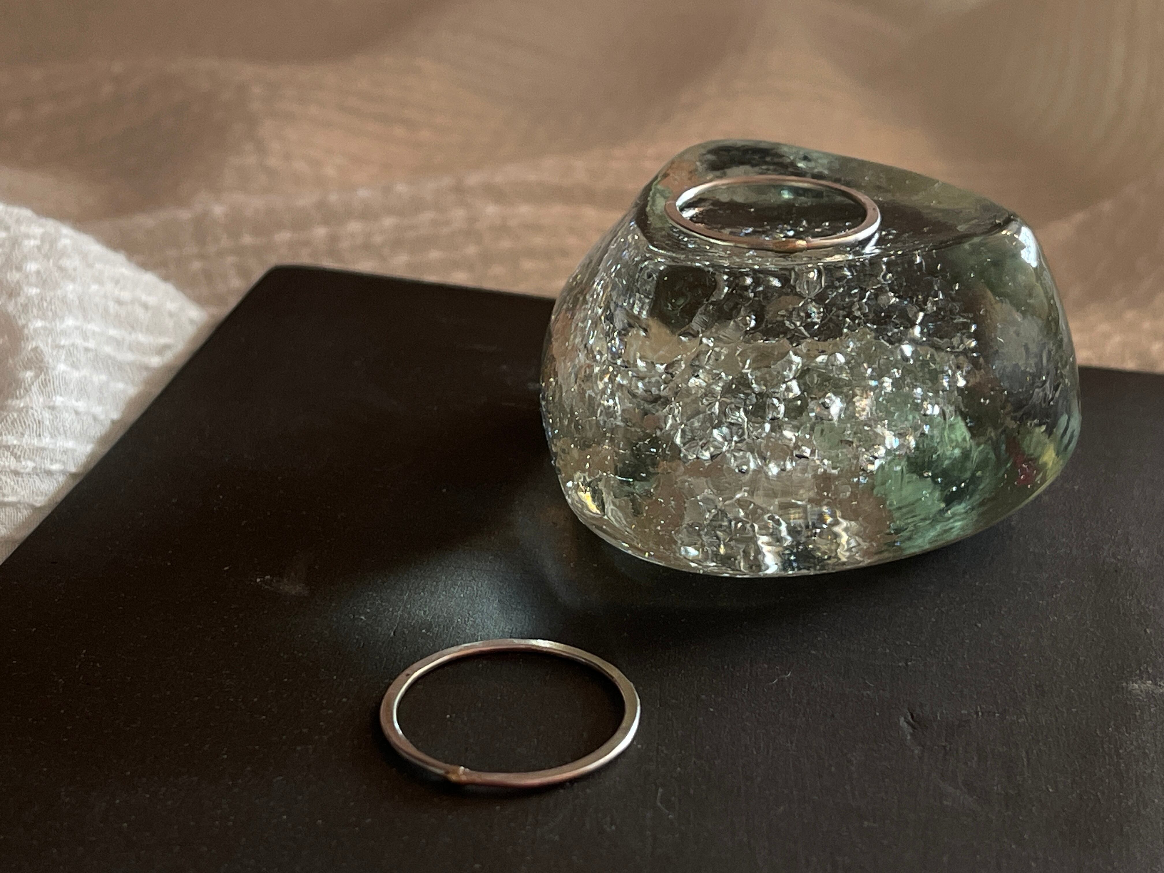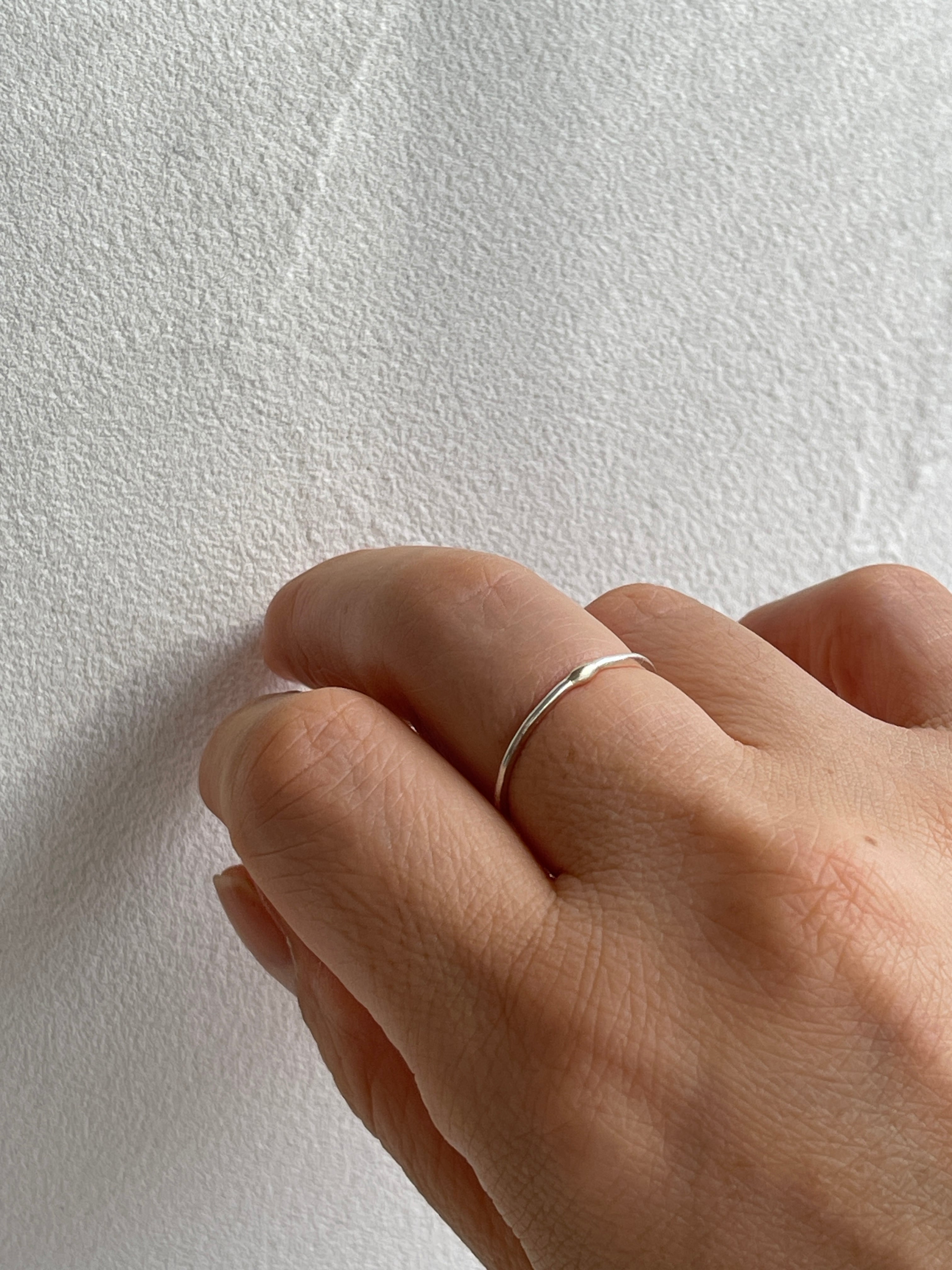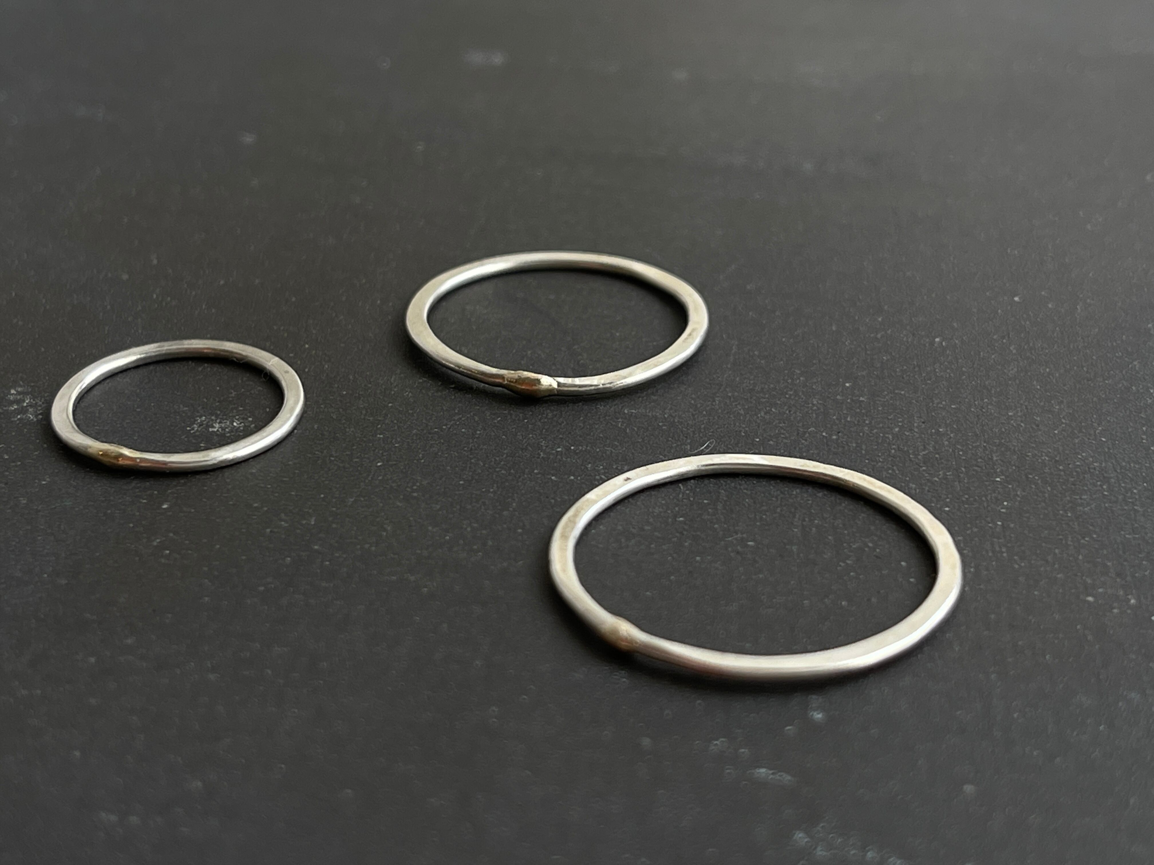 微かにぷくっと10K(ゴールド)でポイントされた、細くて平たいシルバーリングです。他のリングとコーディネートしやすく、重ね付けにも。抜けやすいリングなどお持ちの方は、重ね付けしてストッパー変わりにもお薦めです。付けているのを忘れるくらい軽くて細いので、家事や仕事をしながらでも支障になりません。さりげない存在感で毎日つけている方多いのも納得できる人気作品です。