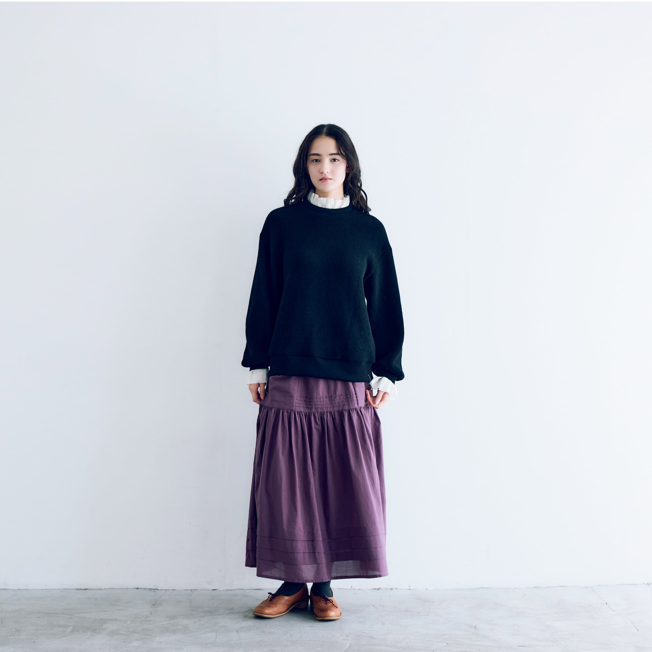 ふんわり、すっきりとした身頃。お袖はゆったりととしたシルエットで、袖口に膨らみを持たせたパフスリーブ。