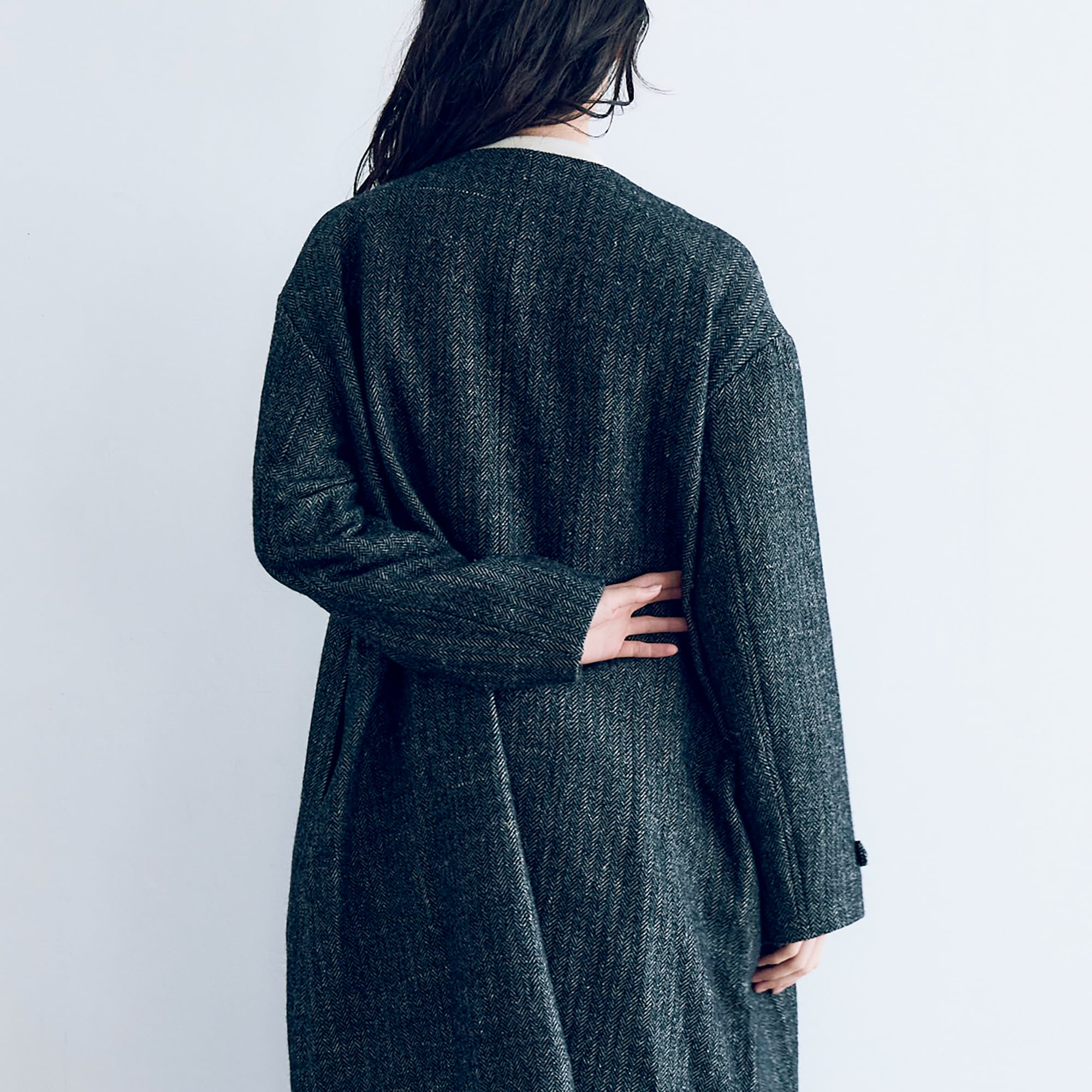 MAGALI ウールリネンへリンボン・ダブルボタンコート/フォグブラック