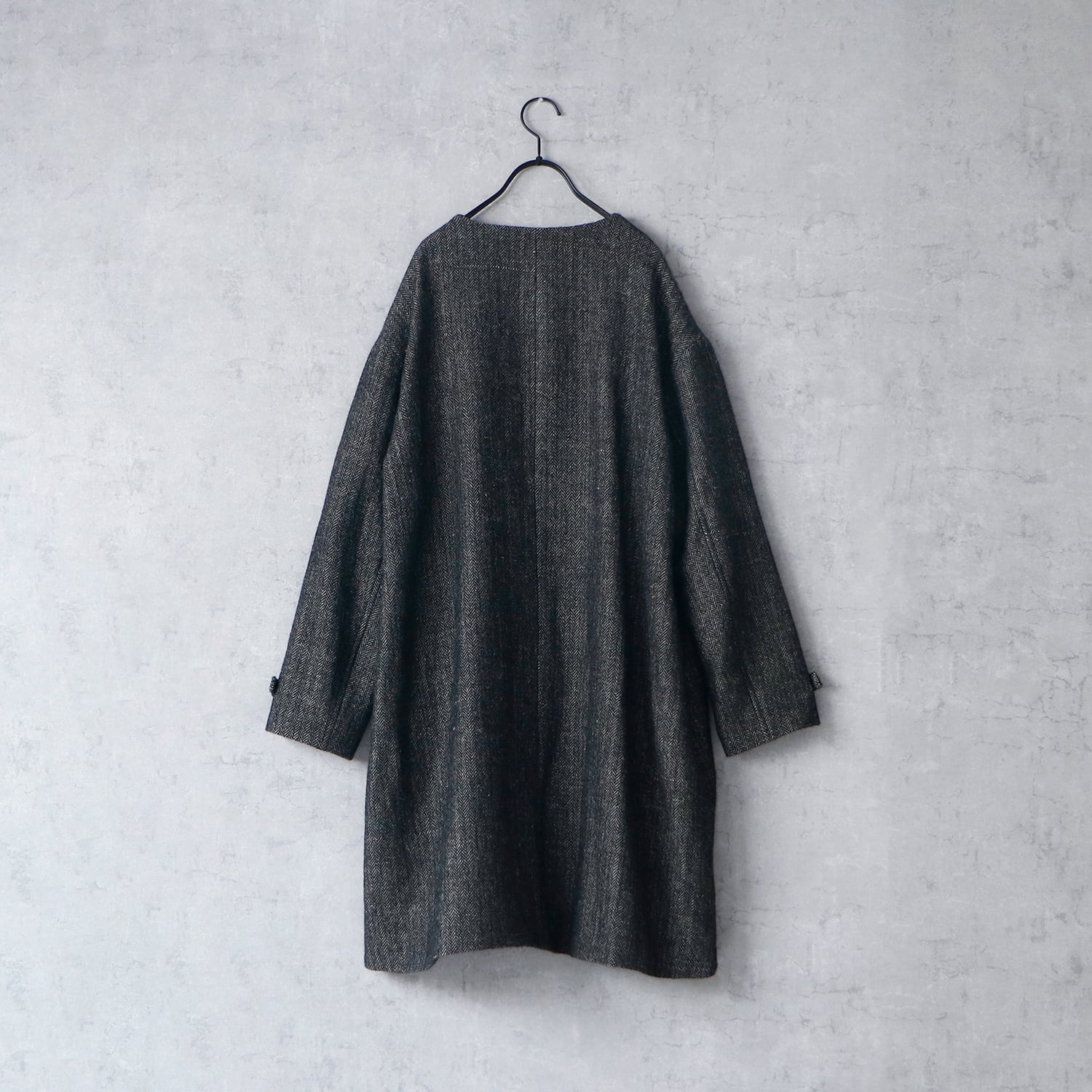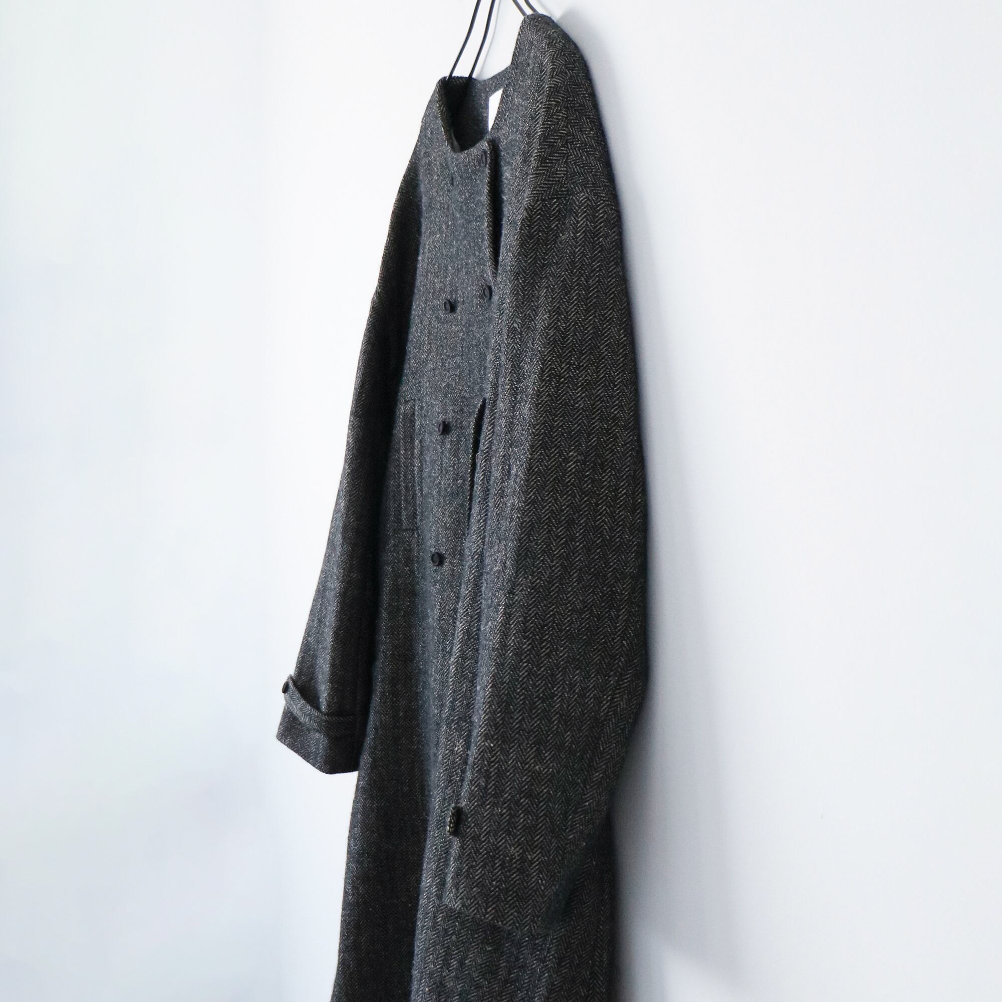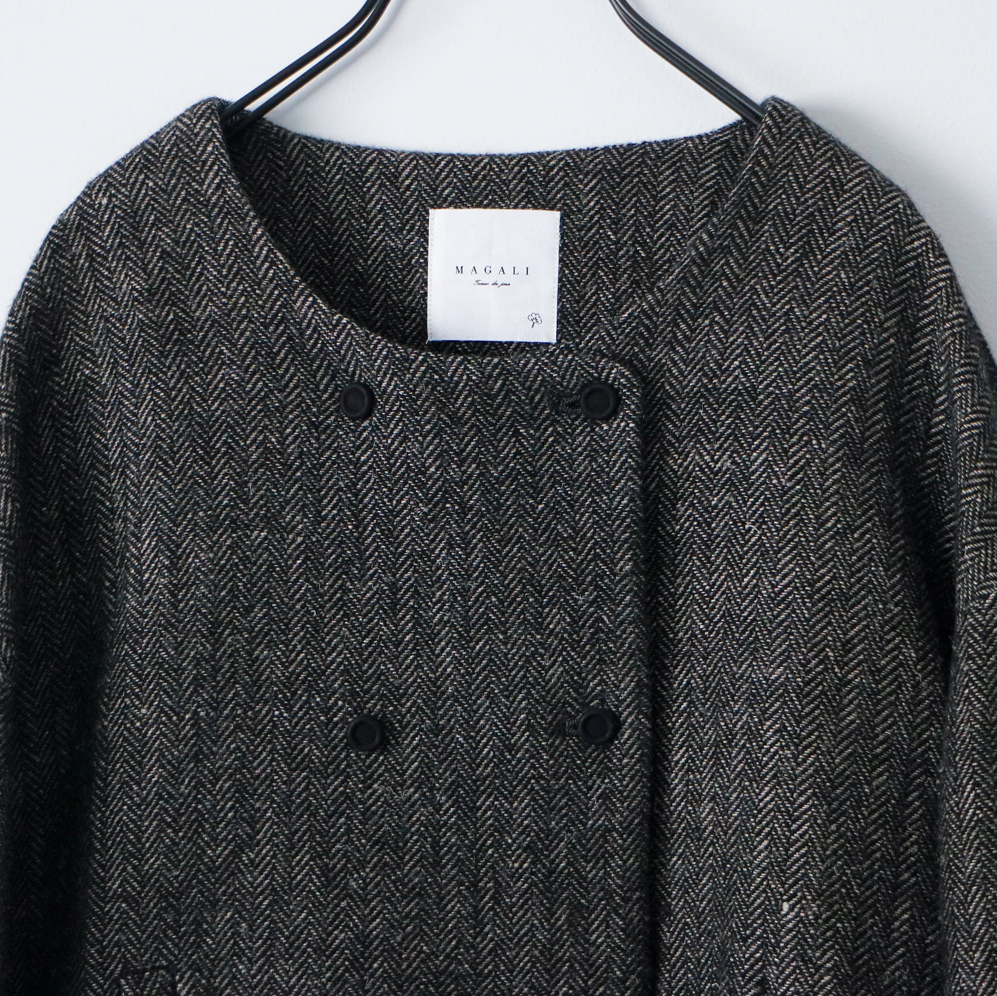 MAGALI / ウールリネンへリンボン・ダブルボタンコート/フォグブラック