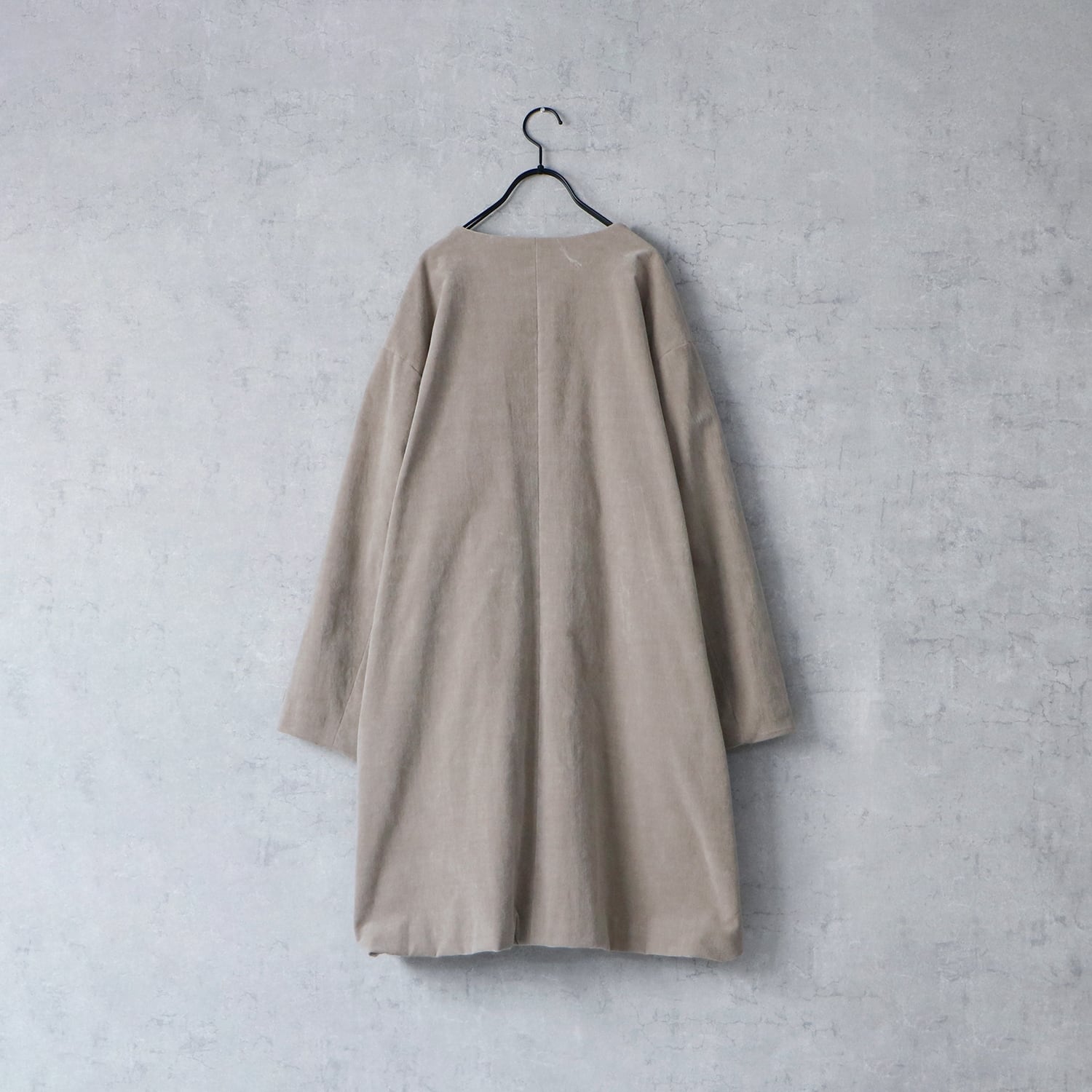素材は、手触りがやわらかな別珍。強撚糸を使用して、縦シワを全体的にランダムに入れて