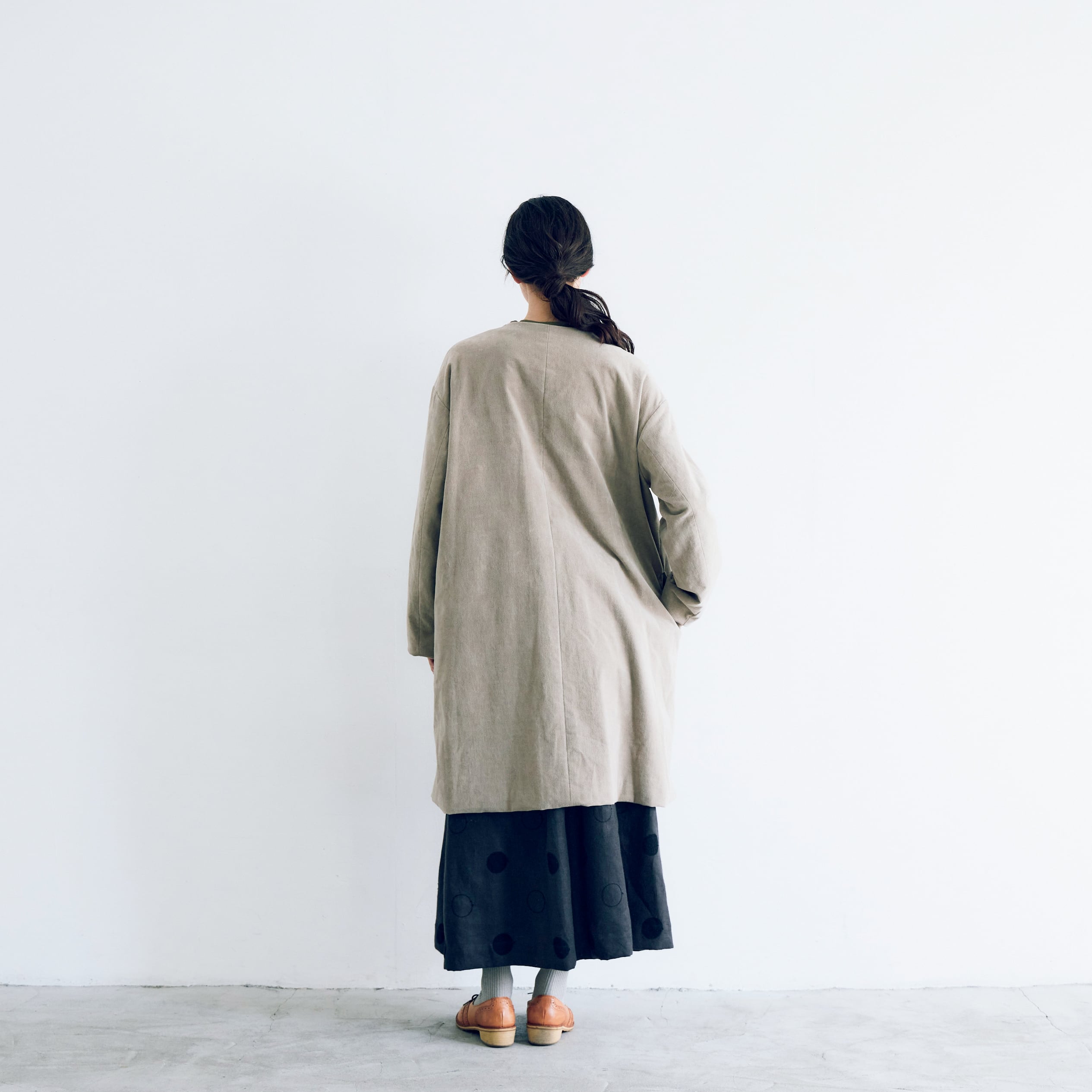 表面に織フシやネップがある場合がありますが、天然繊維独特の特徴ですのでご了承ください。少しずつ特殊な技法で染めています。不規則なシワ、アタリは生地の持つ特性となっておりますので、ご理解くださいませ。摩擦により色落ちし、他の衣料に移染することがありますのでご注意ください。タンブラー乾燥はお避け下さい。