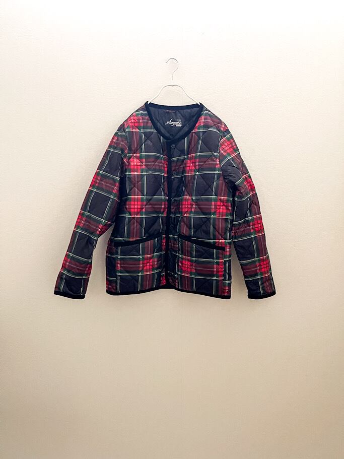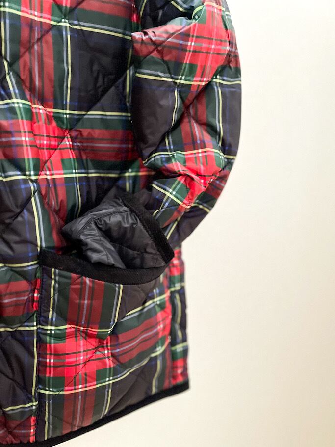 ブラックタータンの配色チェック柄に、バイピングが施されていてカジュアルアウターだけでなく、上品な大人可愛い印象を与えます。