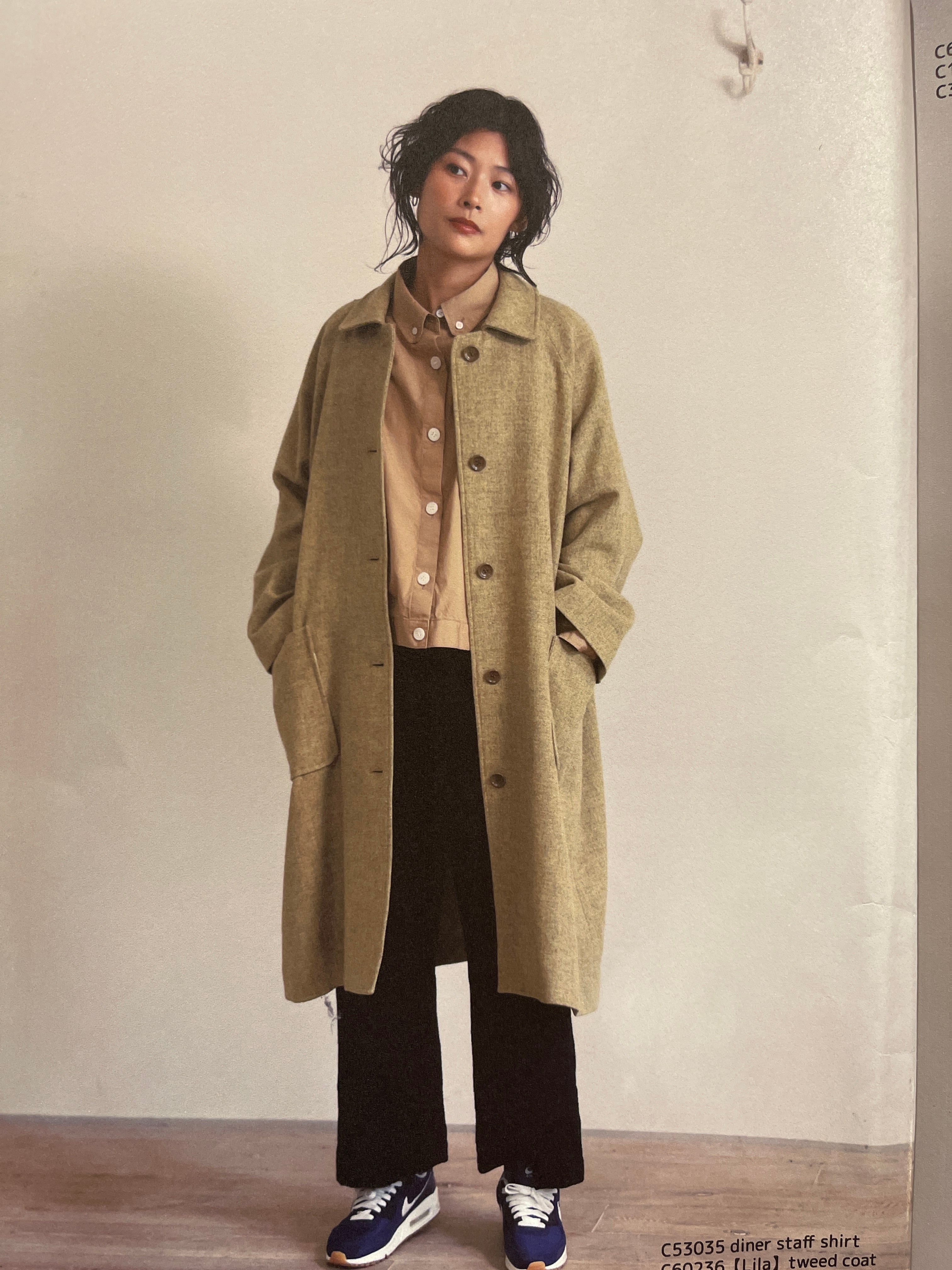 色にとらわれず、どんな服装にも合わせやすい色合いと形のコートです。