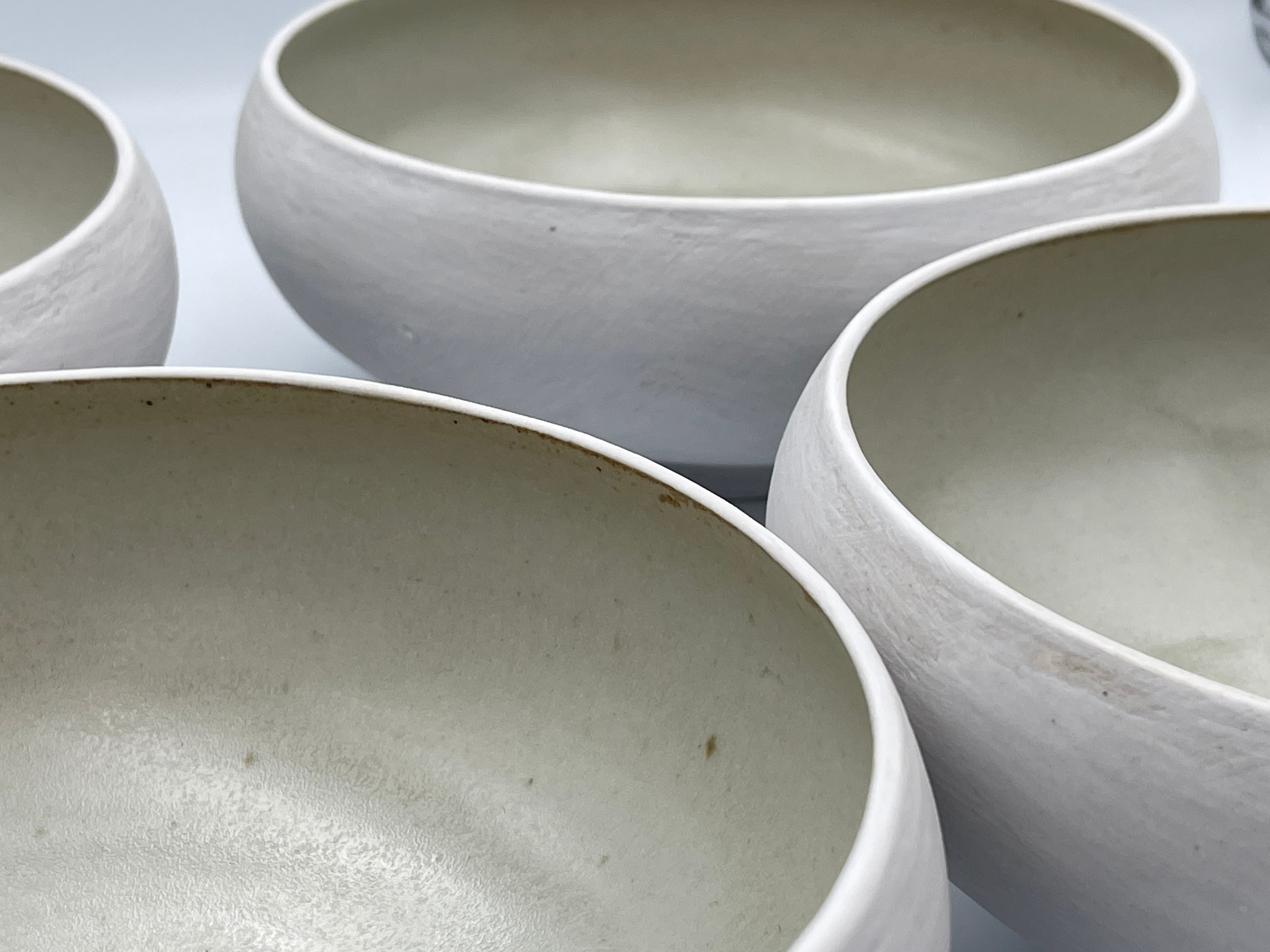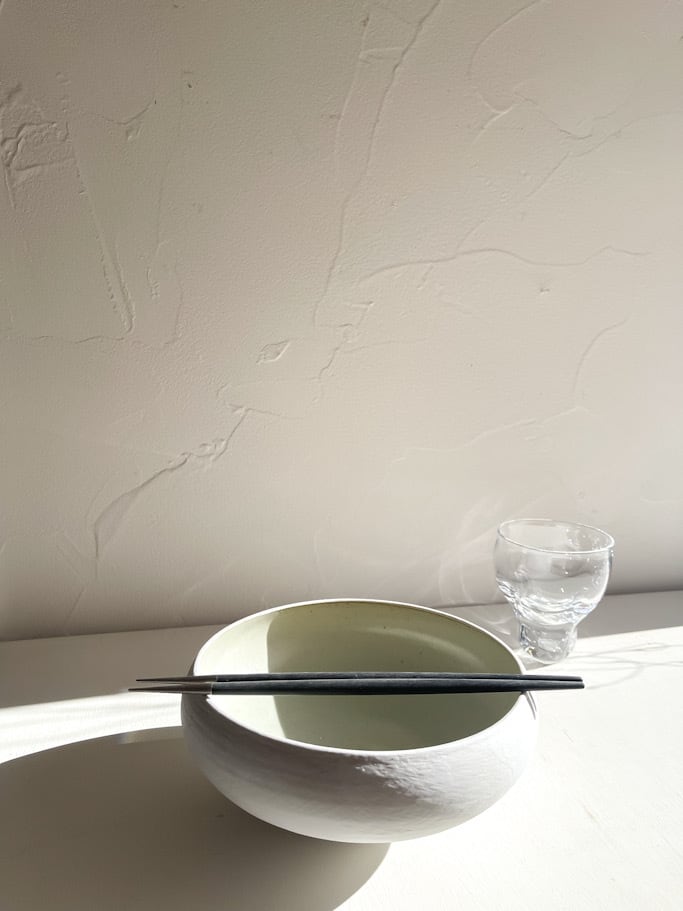 アンティークのような独特のマットな質感と刷毛目で作られる風合いが美しい器を製作。土の温かみを感じつつ、シンプルで現代的なデザインで料理映えする作品は、国内海外で人気を博しています。