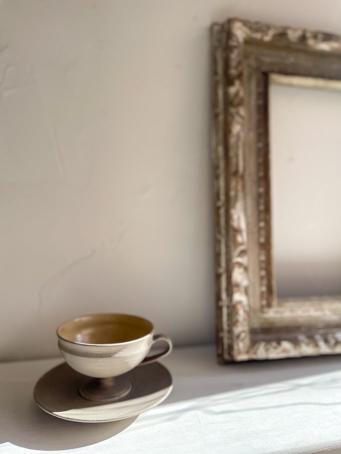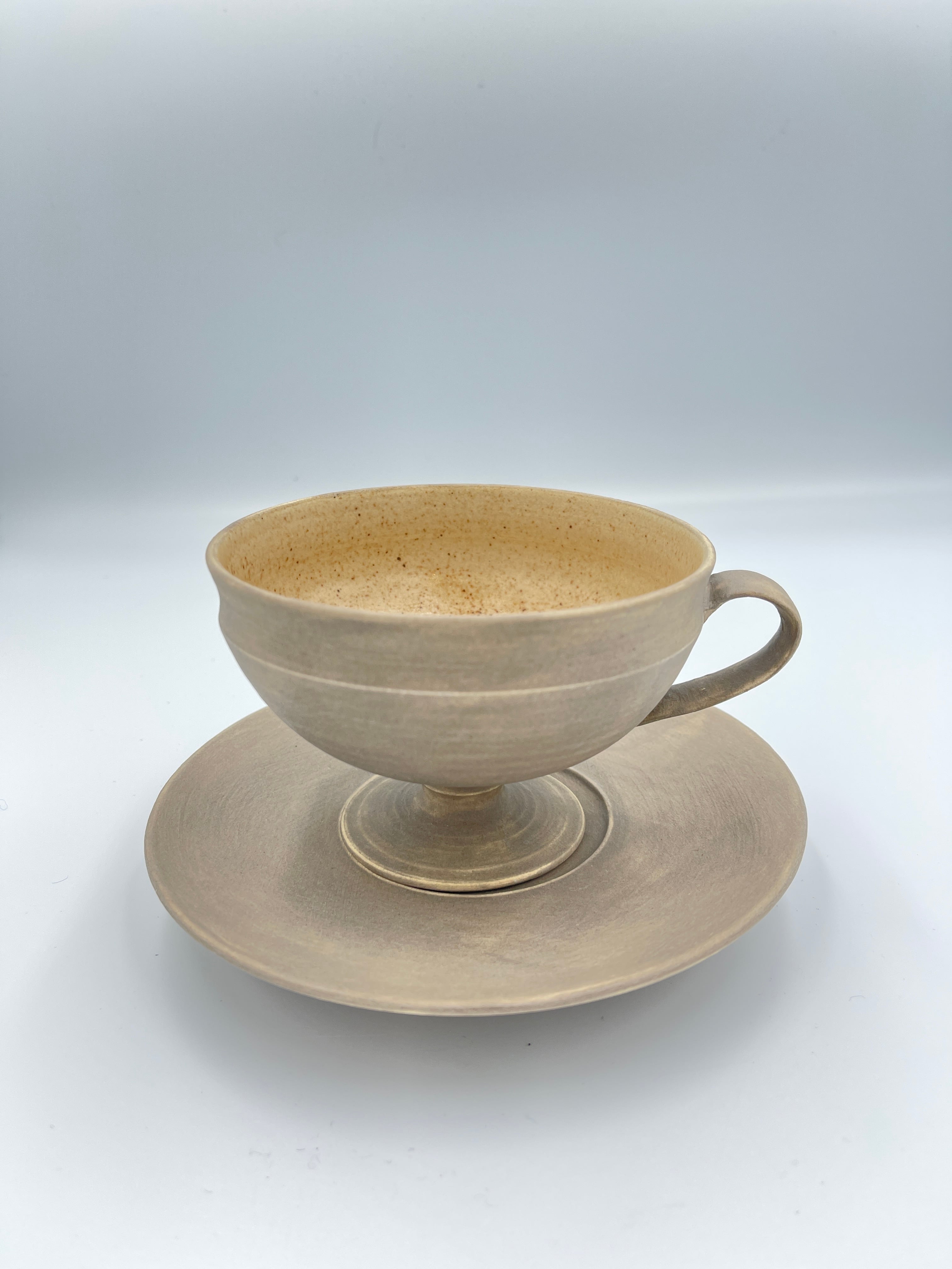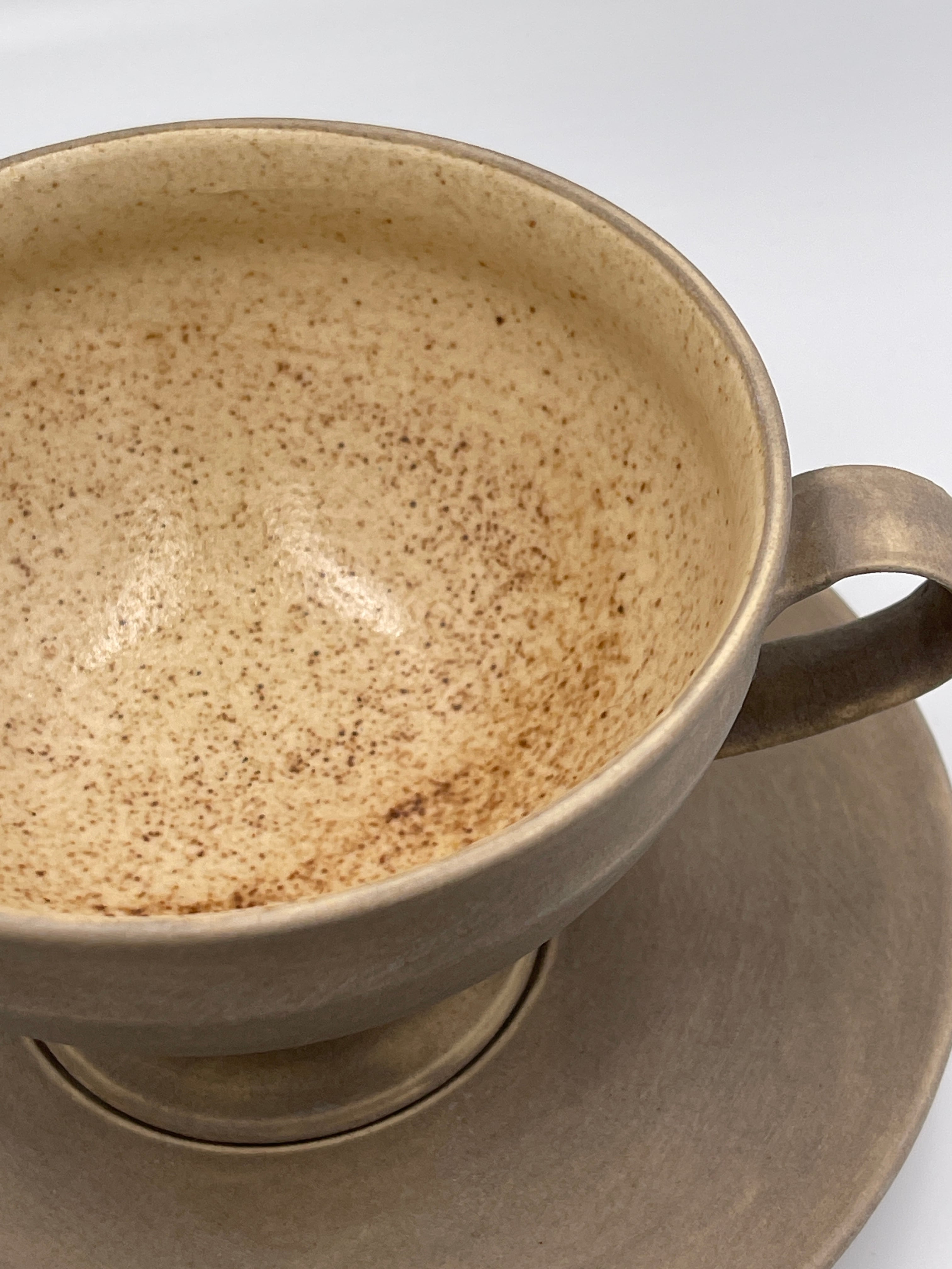 名前の通り、紅茶などを飲むのに適した形です。やや薄めの口当たりで繊細な茶葉の味が堪能できます。持ち手は指にかけやすく、安定してカップを持ち上げやすい形状。内側の釉薬の色合いが宇宙を感じられるような美しい模様となっています。