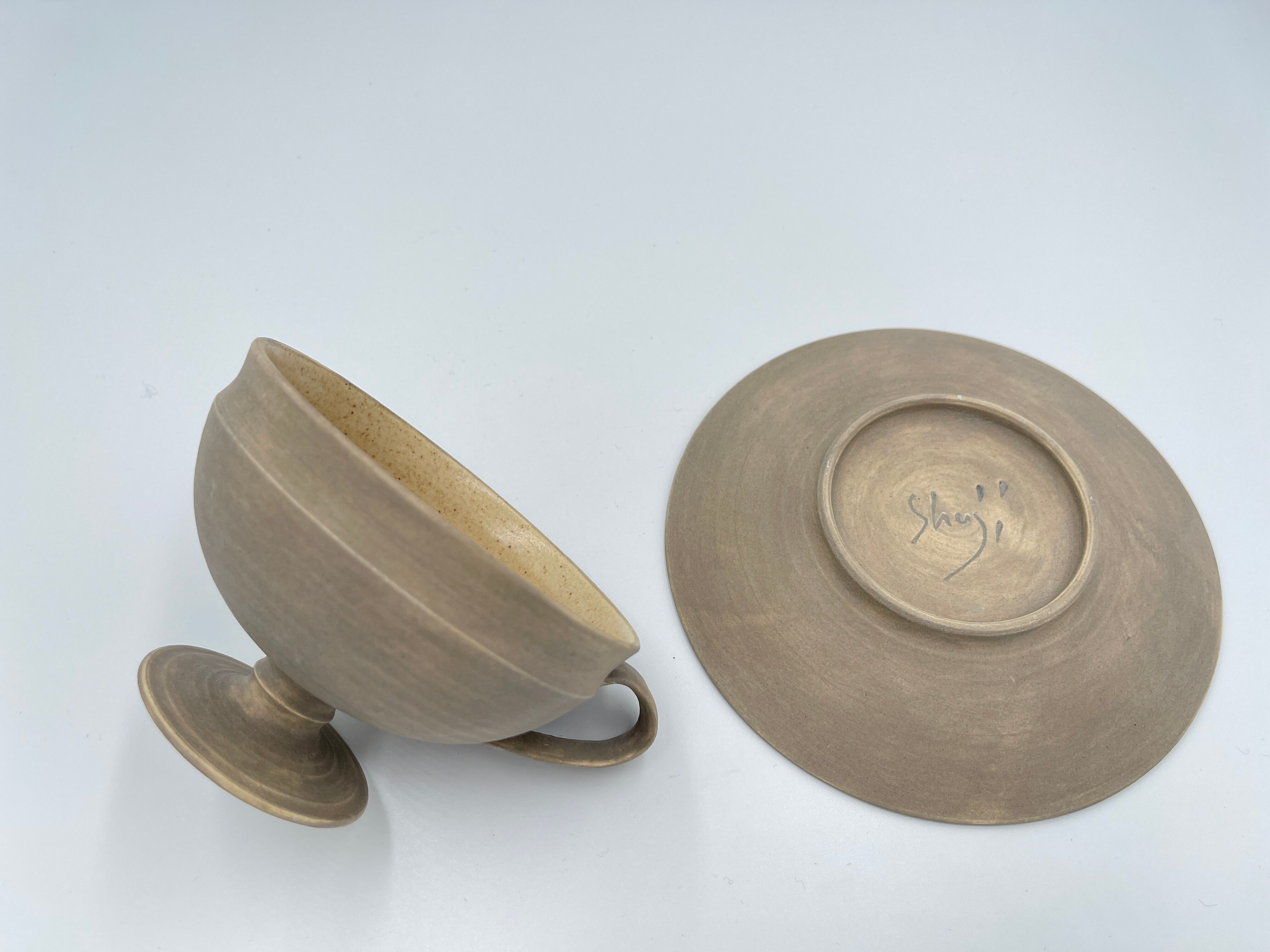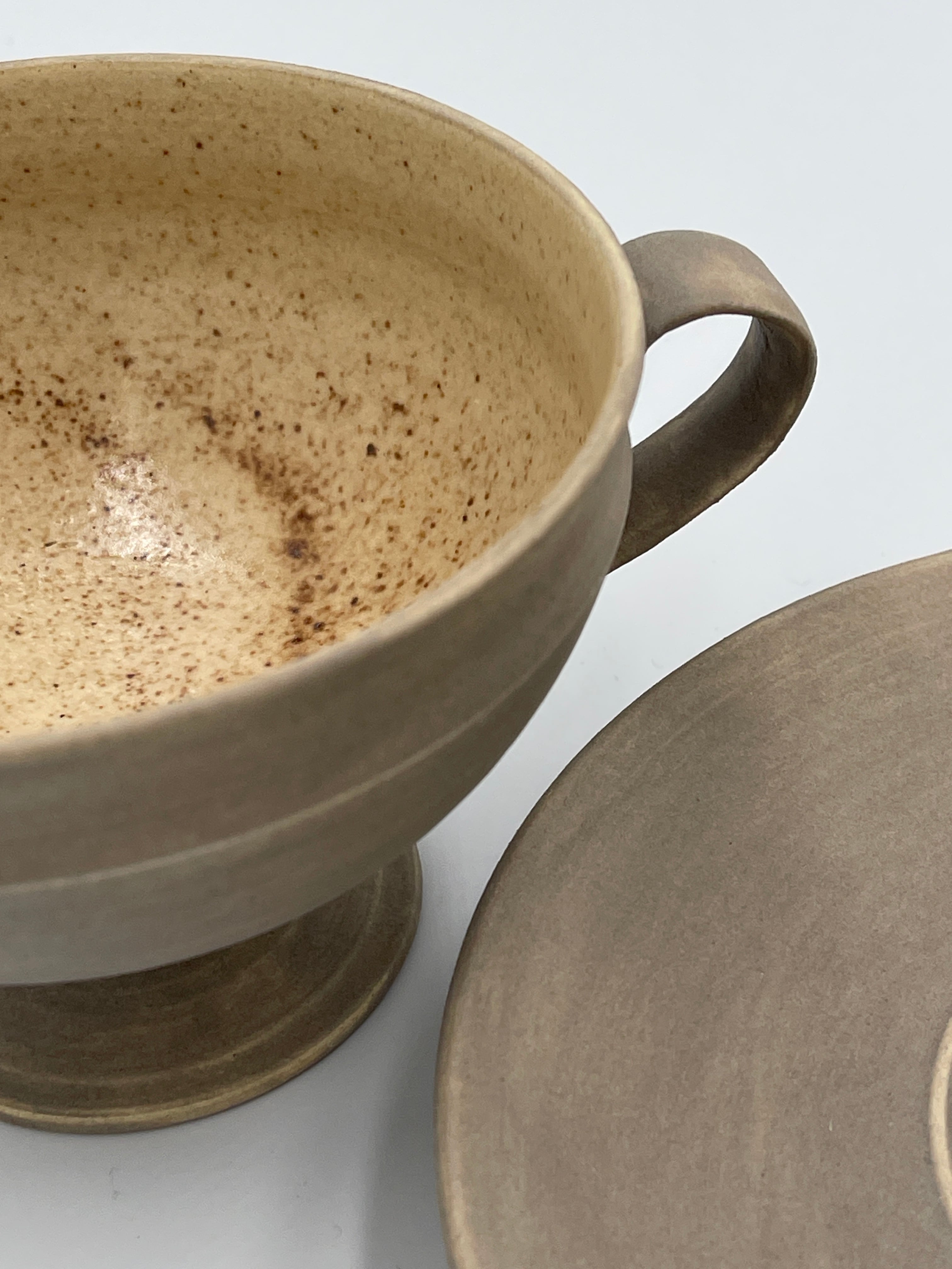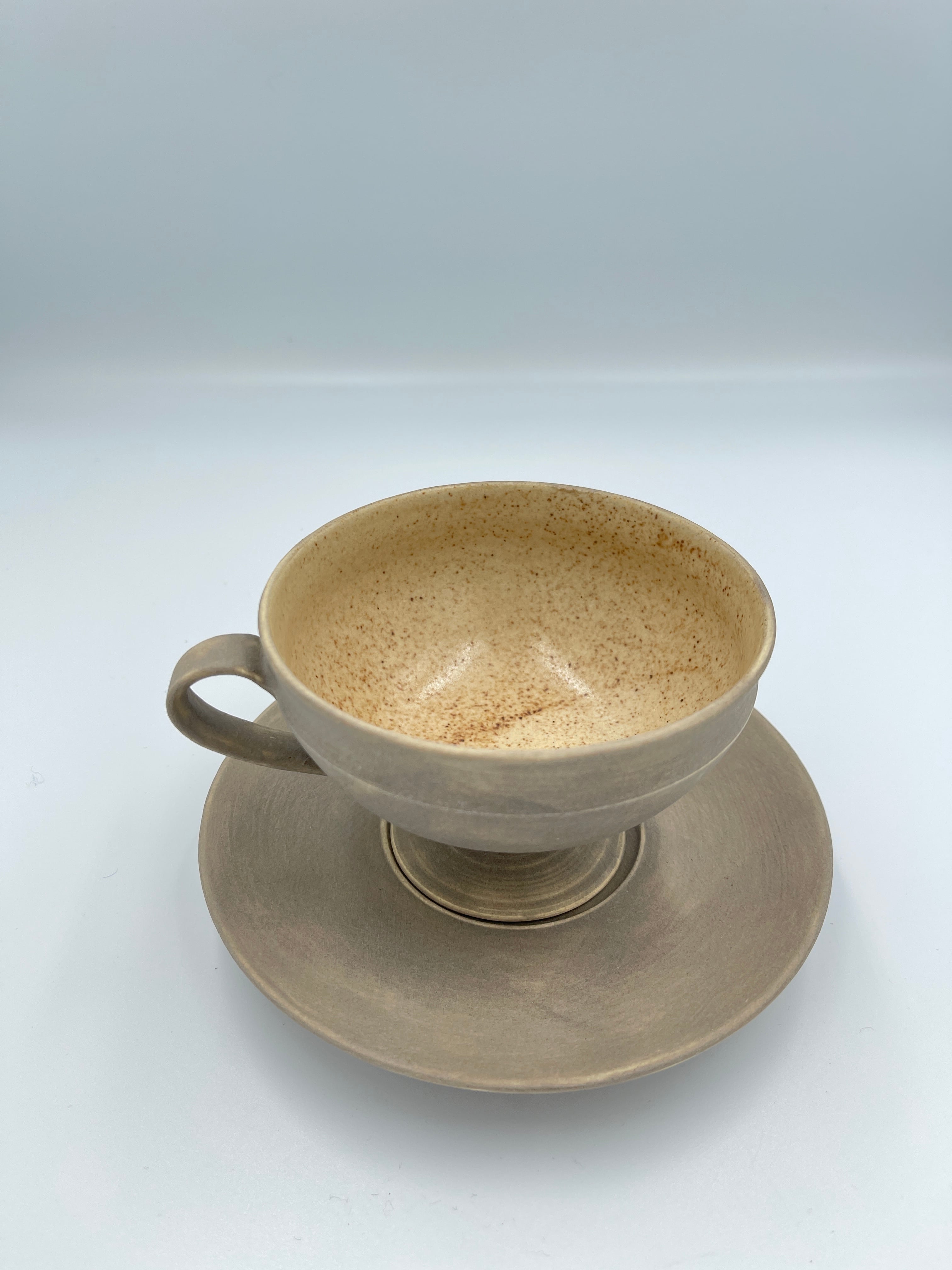 名前の通り、紅茶などを飲むのに適した形です。やや薄めの口当たりで繊細な茶葉の味が堪能できます。持ち手は指にかけやすく、安定してカップを持ち上げやすい形状。内側の釉薬の色合いが宇宙を感じられるような美しい模様となっています。