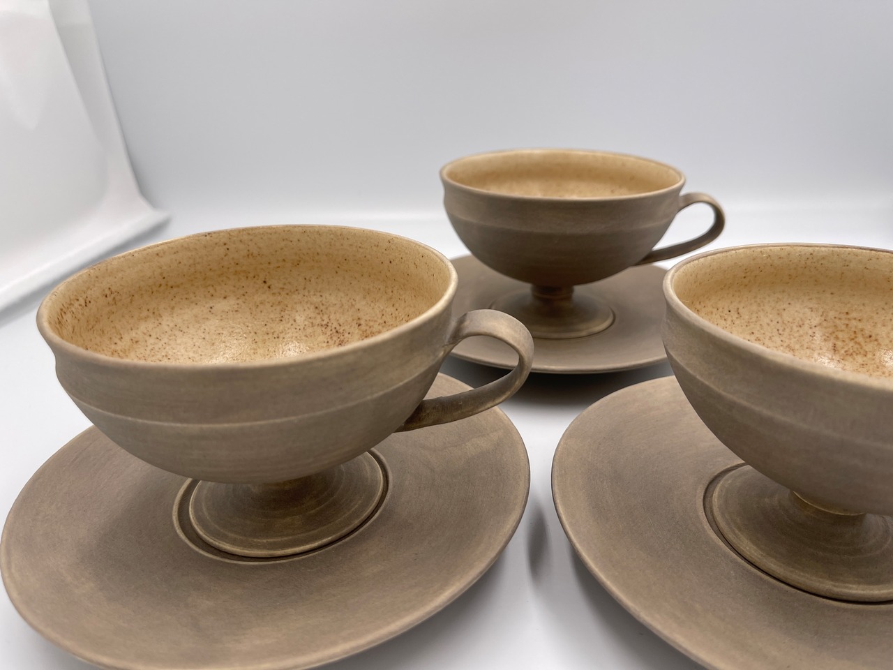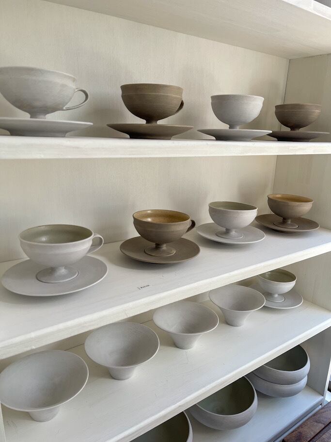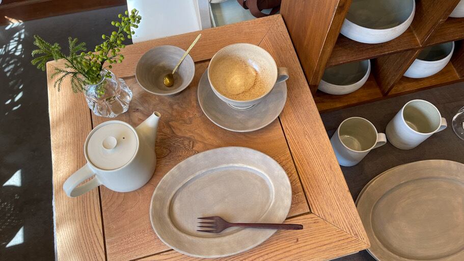 アンティークのような独特のマットな質感と刷毛目で作られる風合いが美しい器を製作。土の温かみを感じつつ、シンプルで現代的なデザインで料理映えする作品は、国内海外で人気を博しています。