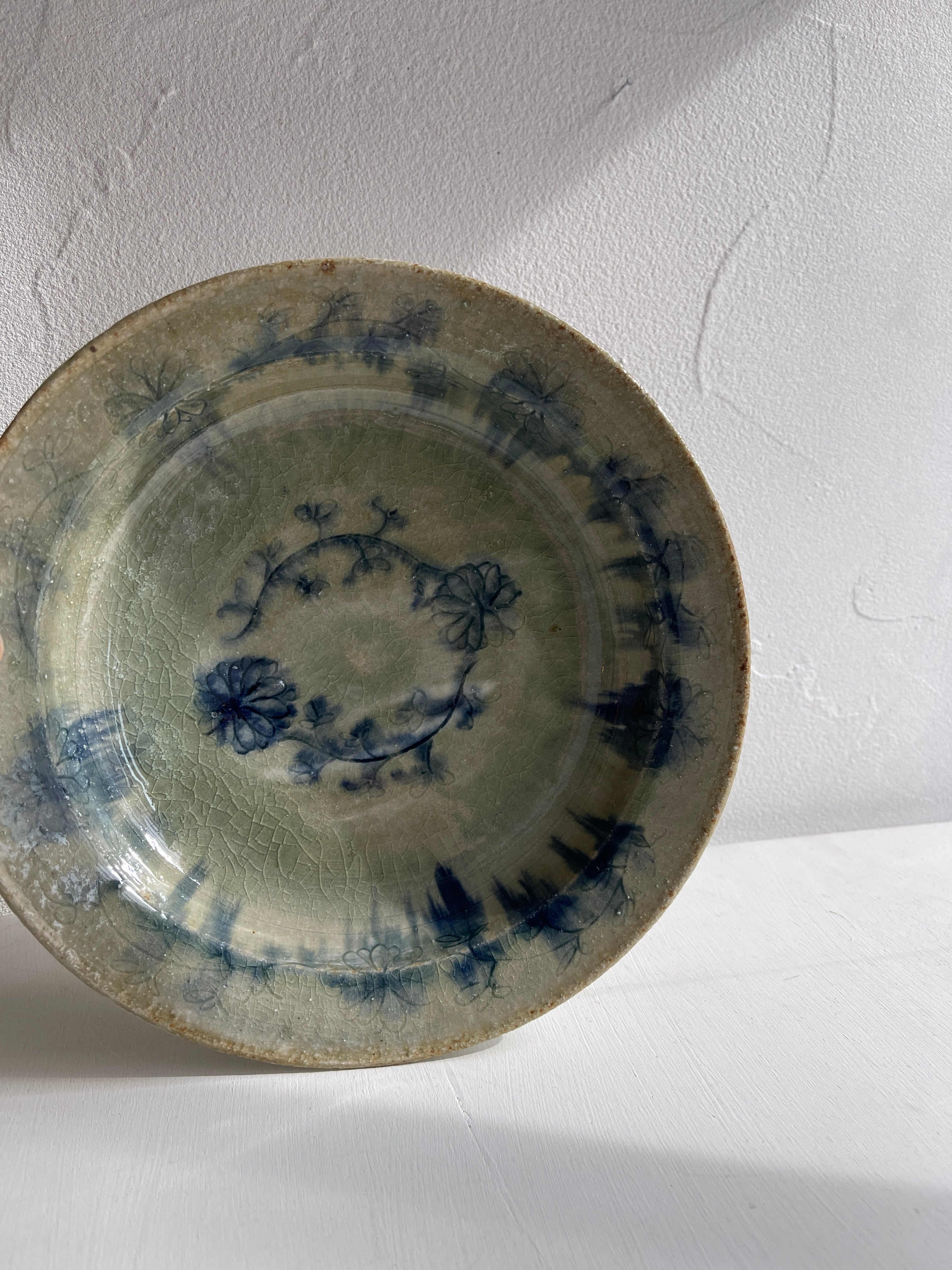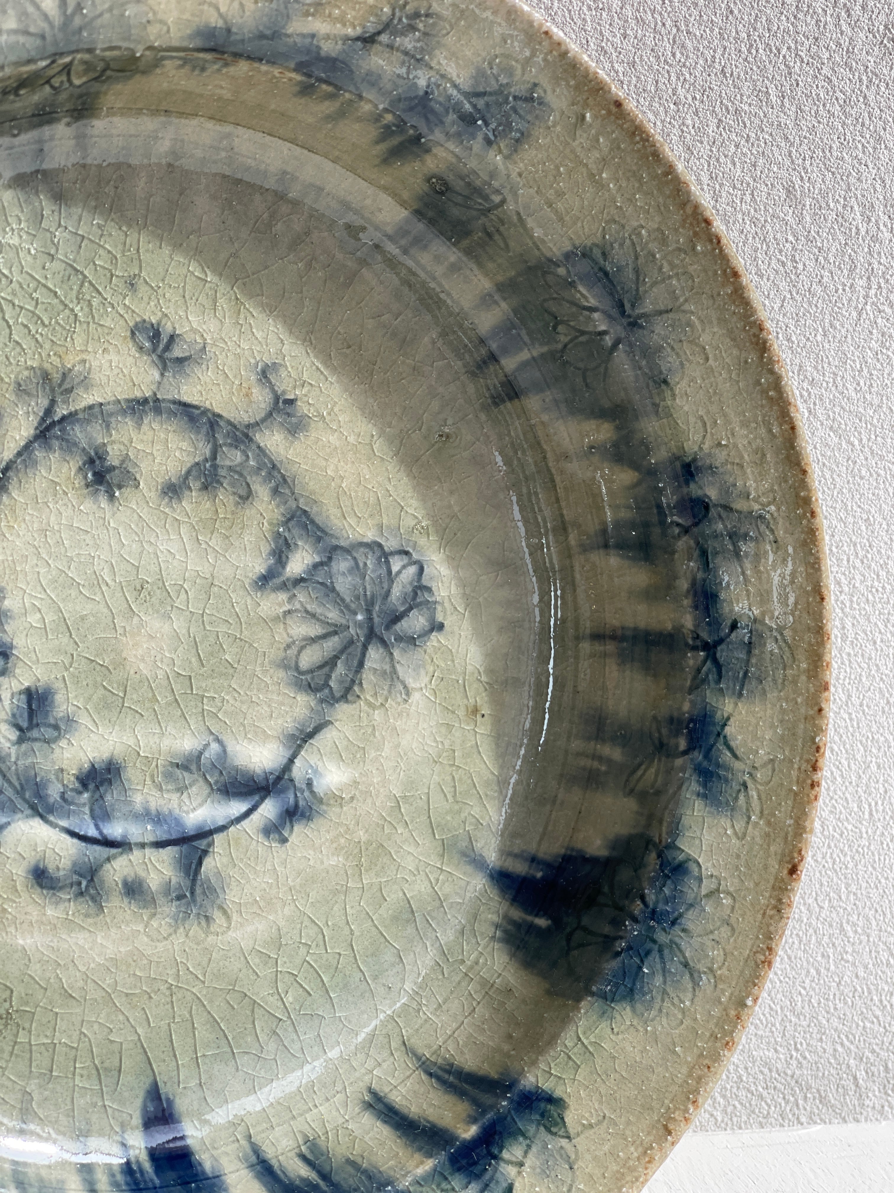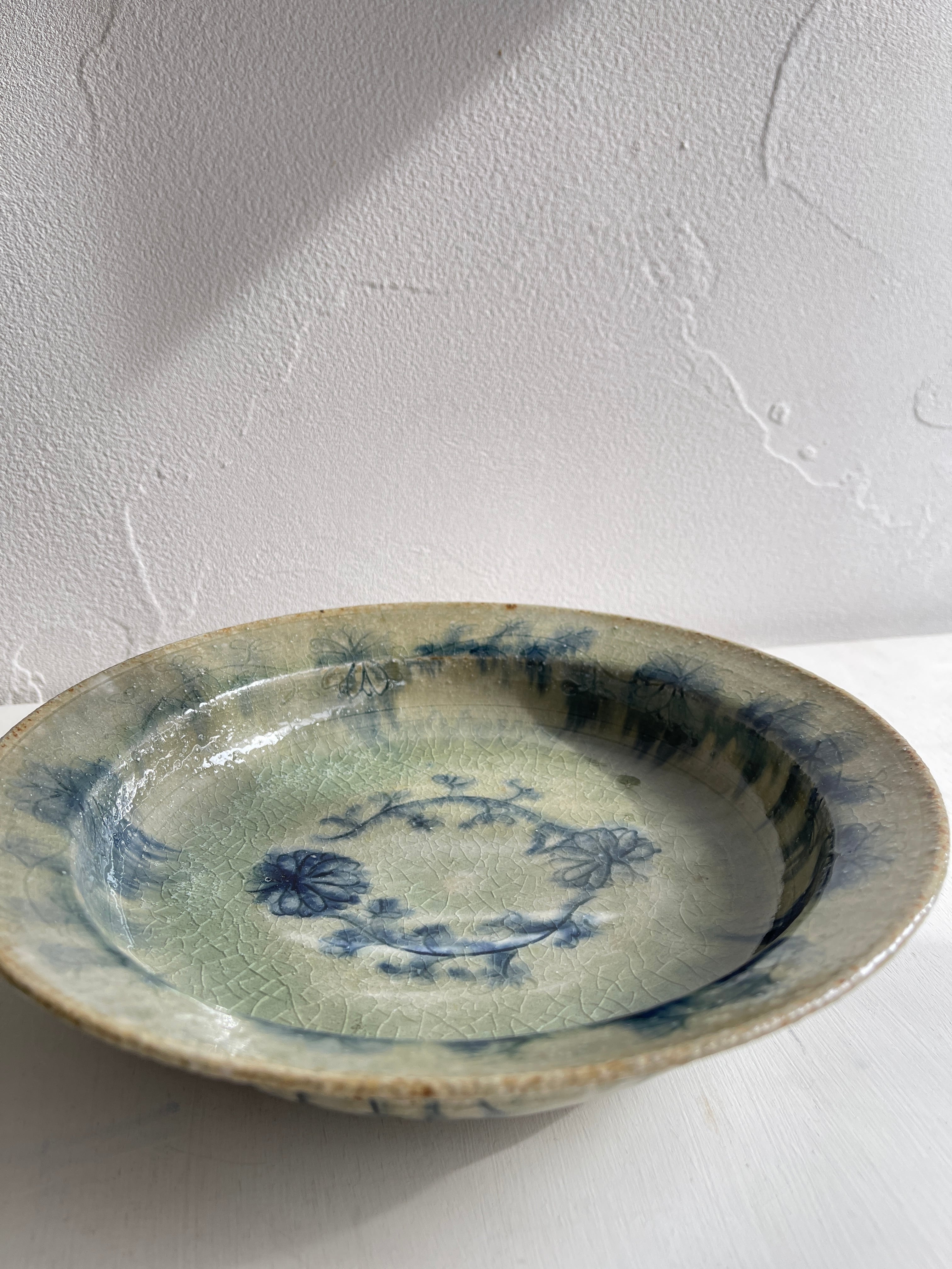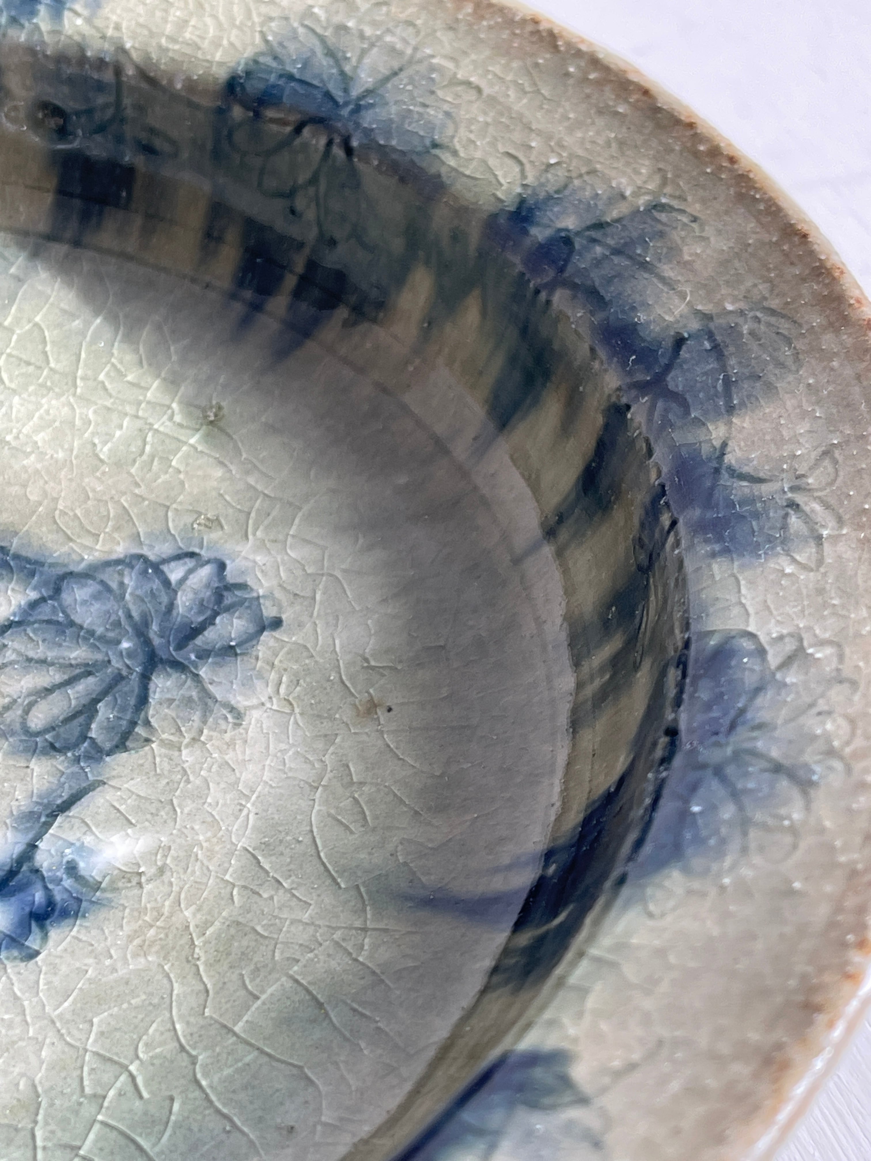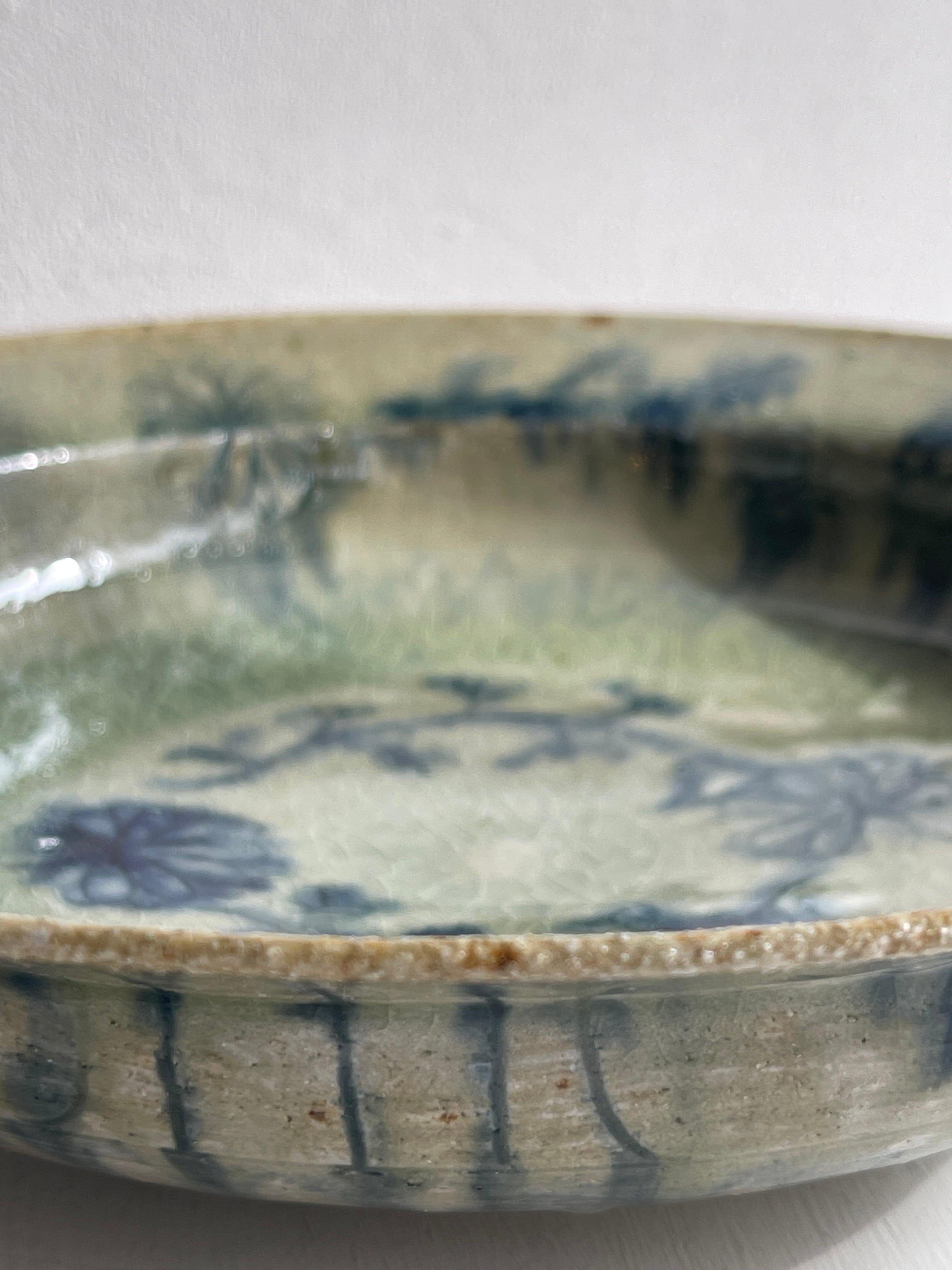 呉須で描かれた花柄植物のやや浅めの7寸鉢です。お皿としても汁物があるおかずを持っても使える万能な形とサイズ。加賀美さんの人気の作品です。