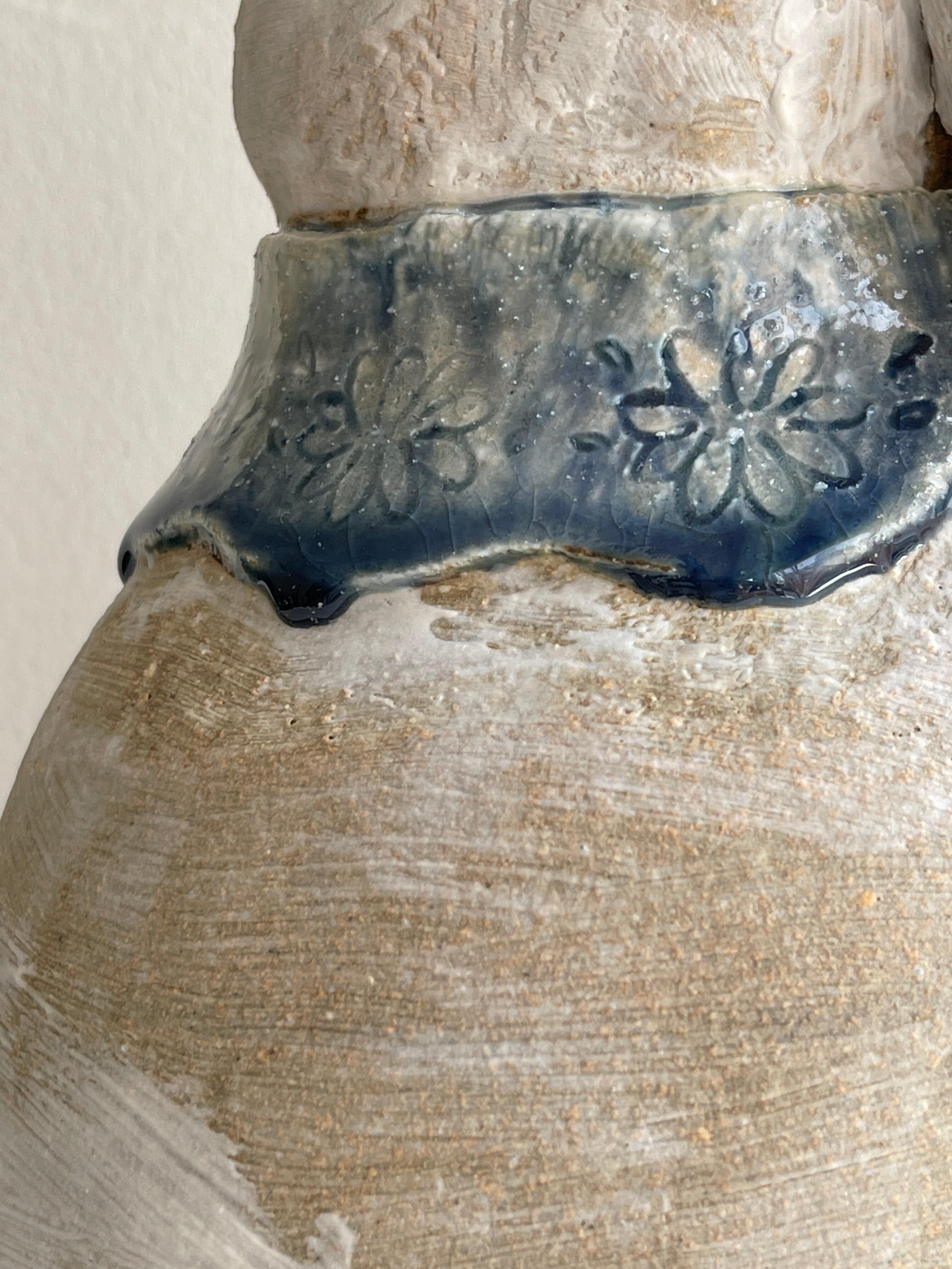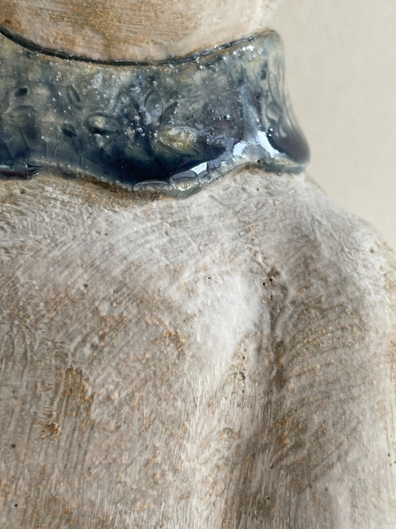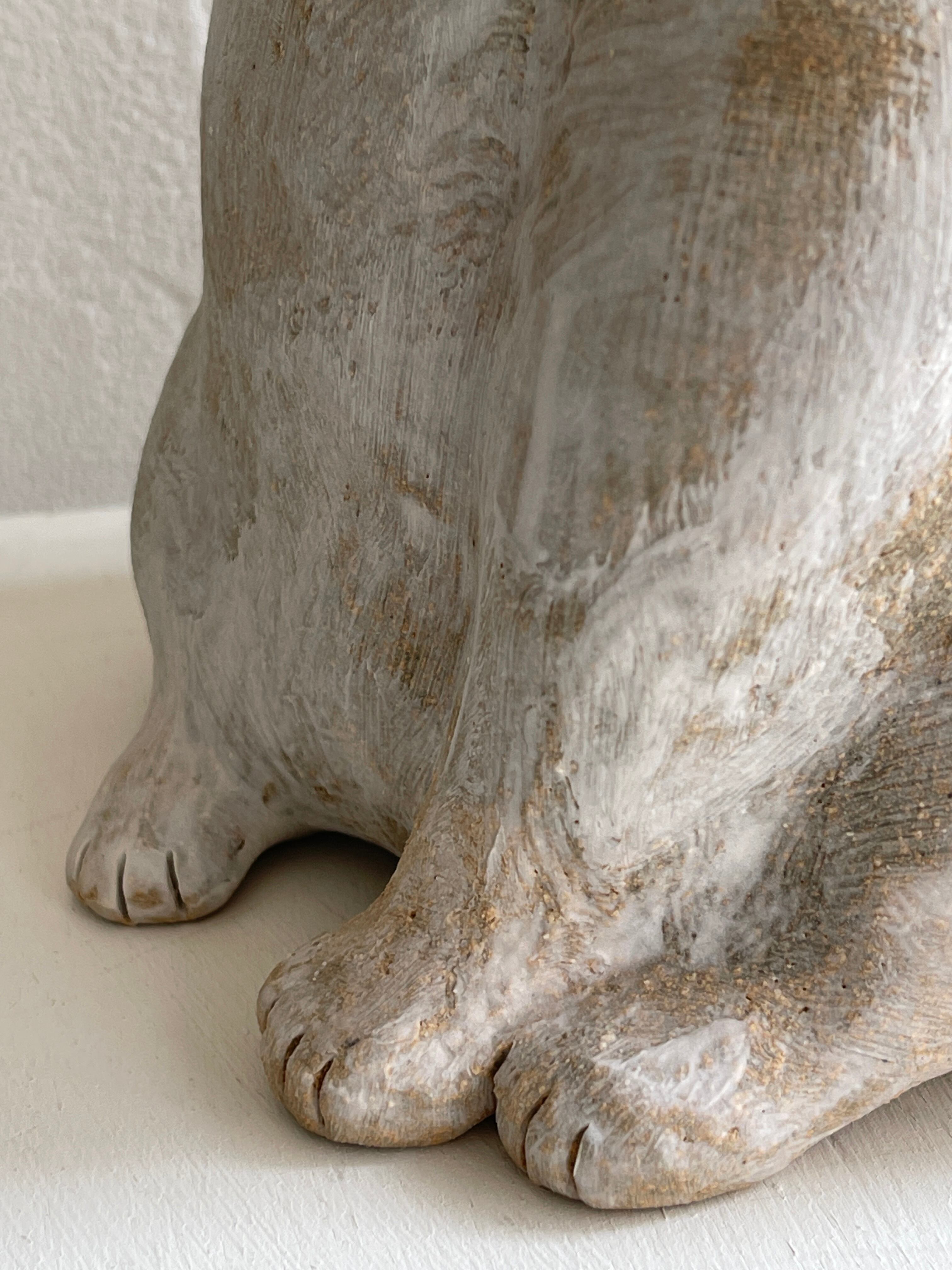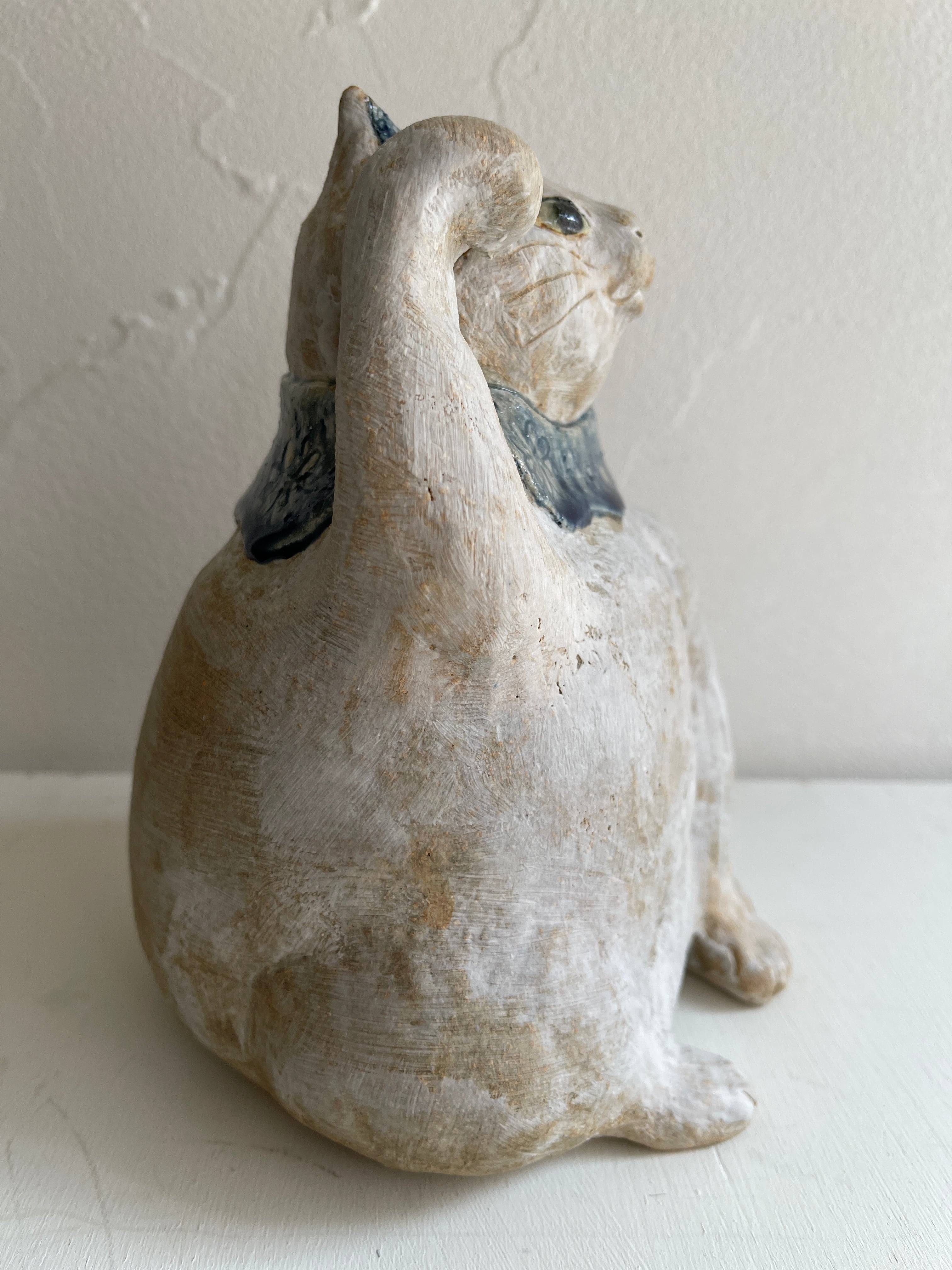 何とも表情豊かな猫ちゃんのオブジェです。右手は金運、幸運を招き、左手は人脈、客招きと言われています。両方招きたいですね。耳の傾きや、身体のふ立体感、顔の愛らしさ、陶器なのに毛並みまで感じ取れるような作品です。